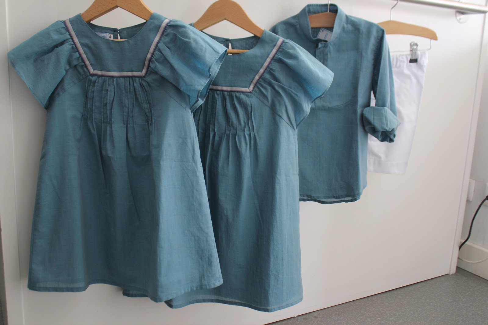 Diz-me uma coisa, por favor. Os conjuntos das duas primeiras fotos são os mesmos? As cores parecem tão diferentes. O primeiro parece um azul ganga enquanto o segundo parece um azul muito mais garrido. Eu precisava de duas camisas de gola à padre para os meus filhos mais velhos levarem ao baptizado dos dois irmãos. Mas tinha de ser umazul sóbrio ou então risquinhas fininhas.