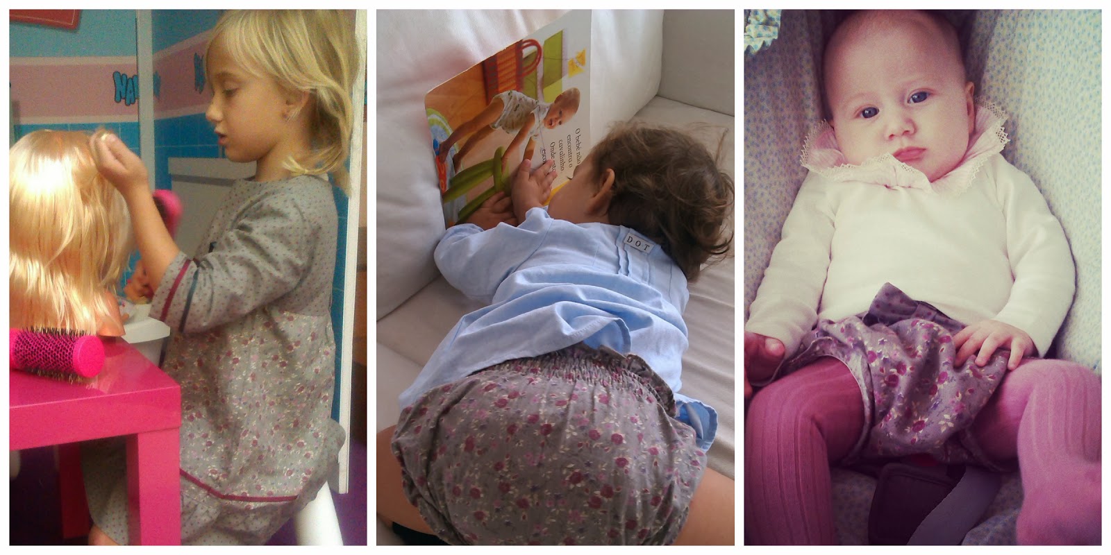 pss – Eu acredito em Amor à primeira vista, e este kit da Little Angels, foi só mais um na minha vida. Gostei do tecido, das cores, e do modelo, logo não havia como ficar mal. Não me enganei, porque adoro vê-las com ele vestido. Vejam…