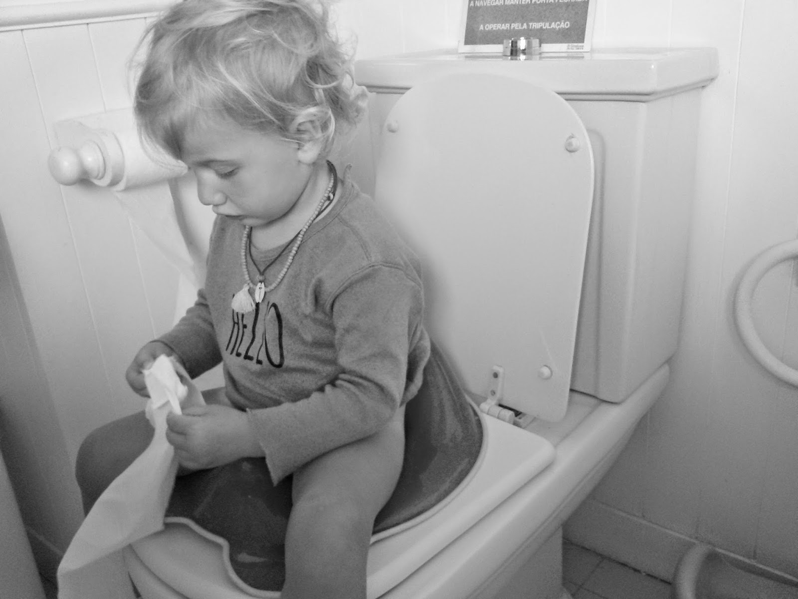 Com quase dois anos ontem pela primeira vez a Caetana pediu para fazer chichi como as manas. Com duas irmãs mais velhas é normal que certas coisas aconteçam mais cedo. Sou muito mais adepta do redutor que do bacio, pois só o facto de não ter de limpar e lavar o cócó ganha de longe. No caso da mini C. que não anda no colégio, posso escolher e tentar que se habitue apenas a esta forma, mas se fosse como no caso das irmãs que começaram no colégio a fazer no bacio, faria igual, porque a sintonia de pais e professoras nesta situação para eles largarem as fraldas é fundamental. Aconselho mesmo que caso não estejam preparados para o fazer, falem com as professoras, porque podem sem querer, andar tudo para trás por não fazerem com que os vossos filhos façam chichi e cócó sem ser na fralda. É uma etapa chata (muito chata), temos de ter muita paciência e principalmente muito estômago frio, que em certos dias é difícil (cheguei a deitar cuecas para o lixo de tanto nojo que me metiam) e a vontade de vomitar muitas vezes teve de ser controlada para que elas não percebessem.