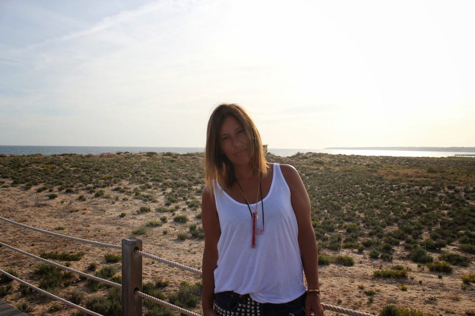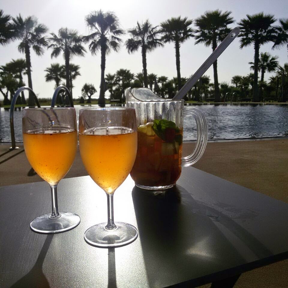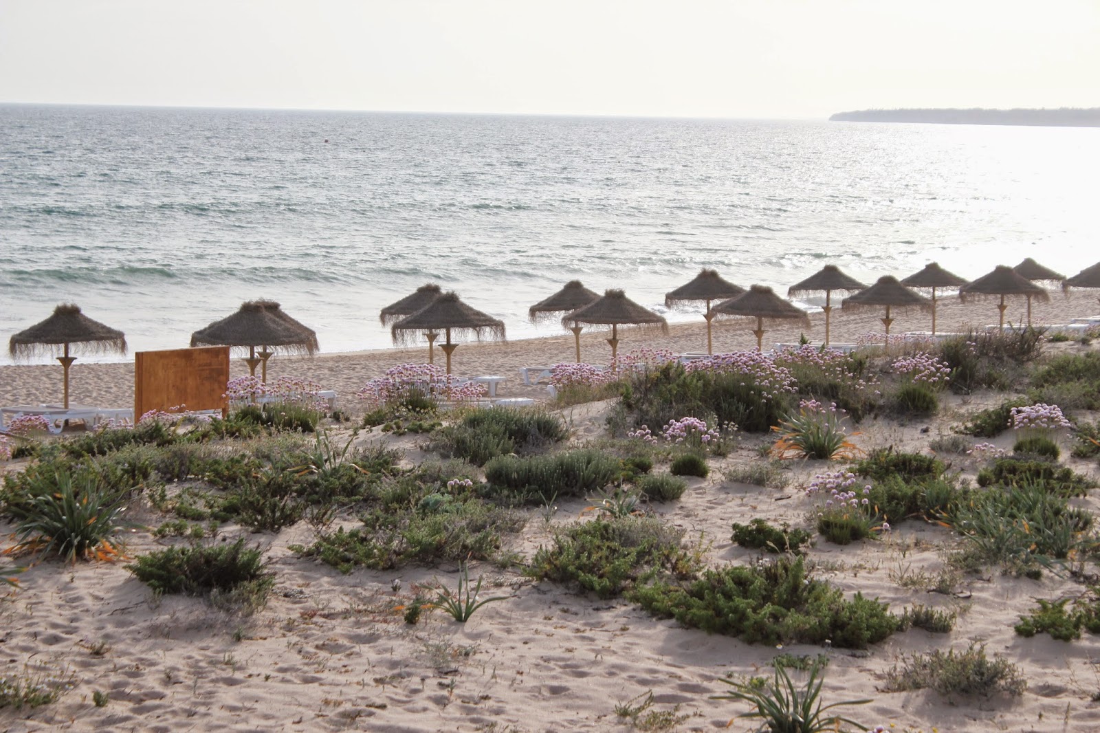 Duas horas separam Lisboa deste paraíso tropical, que parece tirado de uma revista de viagens noutro País qualquer. Palmeiras, muitas palmeiras, areia branca (só não é fina) e um por do sol deslumbrante, num hotel que já esperava ser TOP, da cadeia dos Hotéis Nau. A vista do nosso quarto parecia voltada para a selva e fez-me lembrar Ubud e a nossa lua de mel, em Bali. Fizemos 7 anos de casados e este fim de semana foi marcado e pensado para ser romântico a 2 e começar com esta surpresa, só podia ser um bom sinal. Ficámos no Nau Salgados Dunas Suites e tudo aqui surpreendeu pela positiva. Serviço impecável, um hotel moderno, comida deliciosa (aconselho a quem marcar uns dias neste hotel até final deste mês, jantar no restaurante gourmet L14 que vai passar a ser uma hamburgueria chic e gourmet também , mas vai deixar de ter os pratos maravilhosos que agora podem experimentar. Ainda penso no atum de entrada que me fez comer e chorar por mais), piscinas que nunca mais acabam com uma vista deslumbrante e acesso (quase privativo) a uma praia que há muito ouvia falar, não conhecia, mas fiquei apaixonada, a praia dos Salgados. Os dias foram passados nesta praia (que este fim de semana até ondas teve para grande sorte do H, parecia tudo planeado ao mais pequeno pormenor), uma praia enorme, linda, com dunas cheias de flores e espaço que nunca mais acaba. Esta é sem dúvida a melhor altura para ir uns dias para o Algarve, pois está ainda tão sossegado, tão só para nós que, vou parecer egoista eu sei, mas é do melhor que podemos ter. Acordámos cedo todos os dias e aproveitámos para boas caminhadas, para mergulhos na piscina ainda em silêncio e sem ninguém (as pessoas chegavam bem mais tarde do que nós) e até a corrida que fiz sábado em plena hora de calor, foi fantástica e nem pareceu aquele sacrifício que a minha cara demonstrava.