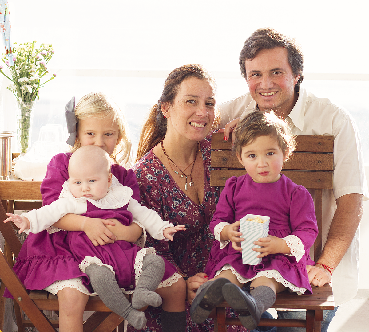 pss – Os kits para este dia especial foram escolhidos, há já algum tempo e o resultado final não podia ter ficado mais giro. Os vestidos e fofo das Cs., da cor beringela, são da Tu Chique e fizeram um sucesso. O meu não foi pensado para condizer com elas, mas ao ver as fotos, só posso dizer:
