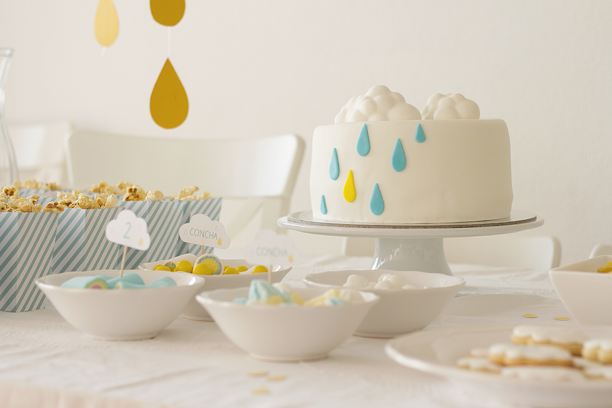 O tema da festa da C. pequenina era a chuva, nuvens e inverno, O tempo mais provável para um dia de Dezembro. Mas não, ontem quando acordámos, o sol estava radioso, e o céu azul, como um verdadeiro dia de Verão.