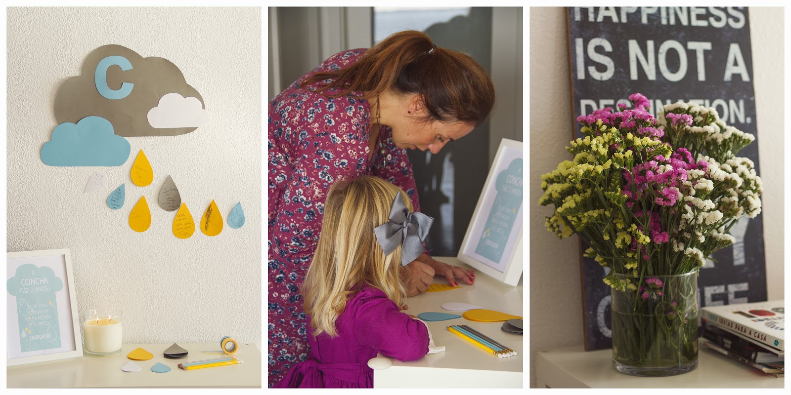 A festa da C. pequenina foi preparada e pensada pelas queridas S. e A. da Let’s que passaram a manhã de ontem na montagem da festa chuvosa, mais quente e cheia de sol de Inverno, que já vi. Tudo foi pensado ao pormenor, cheio de carinho e muita paciência pelas duas e o resultado final não podia ter ficado mais querido e mais bonito. As cores fugiram do tradicional cor de rosa das meninas, e eu adorei a escolha. Nada de muito exagero, nada de comidas a mais e o mais era importante, que ela quando visse gostasse. Esse foi, aliás, o momento mais ternurento do dia. O seu: