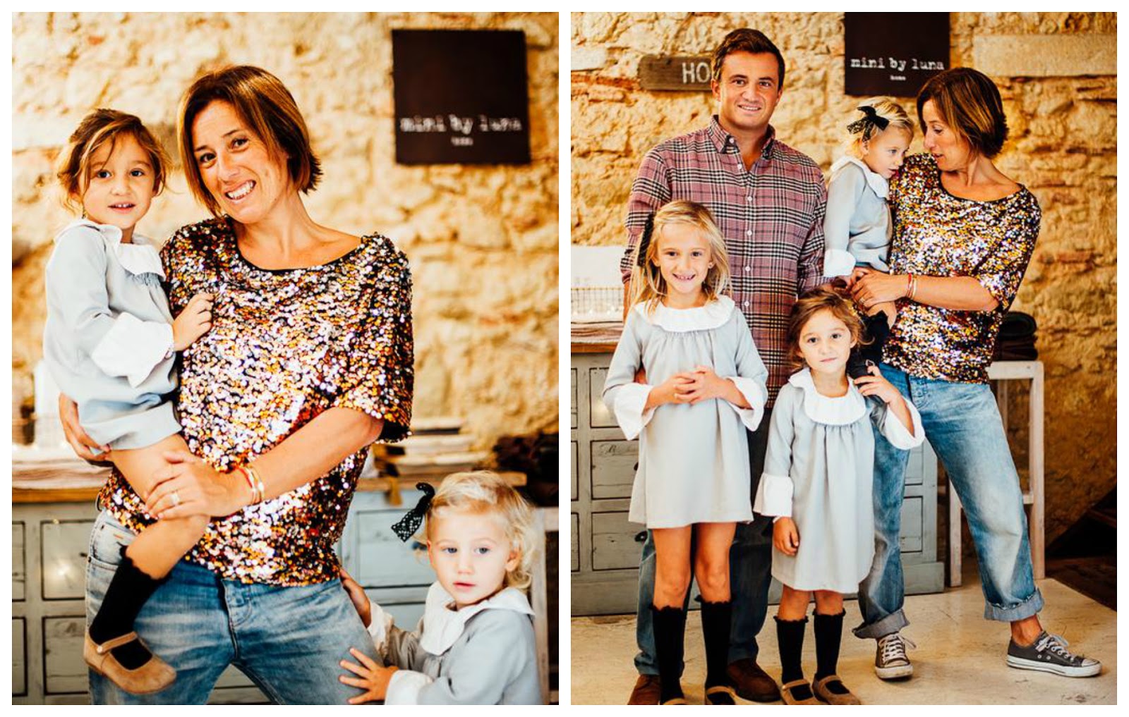 Adorei o cenário das fotos, adorei os tons, as meninas estavam lindérrimas mas…mas a Ana parece que não encaixa no cenário, estava à espera de ver um look mais clássico apesar de saber que a Ana gosta de andar descontraída. A foto em que está com as meninas e só se vê a blusa gosto muito, mas as outras em que se vê as calças de ganga não gosto, provavelmente por não estar habituada. Mas as meninas estavam maravilhosas, adorei o estilo. Engraçado que no ano passado comprei um vestido da Maria Bianca para a minha afilhada e é exatamente o mesmo género só que era bege em vez de cinza.
