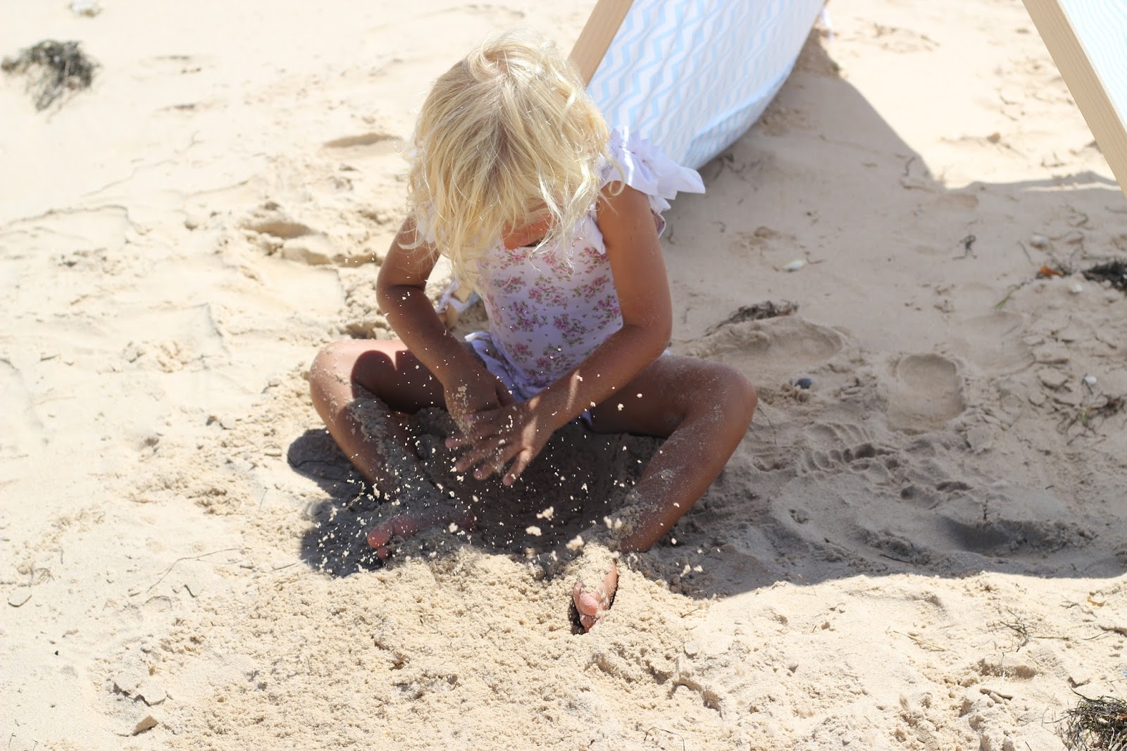 Uma sugestão gira para os miúdos que dá um jeitão na praia. Elas adoraram a ideia de ter uma tenda na praia para brincarem e nós achámos que a sombra que fazia ia ser muito útil e usada. Lá ficava a lancheira e muitas foram as sestas dormidas ali ;)
