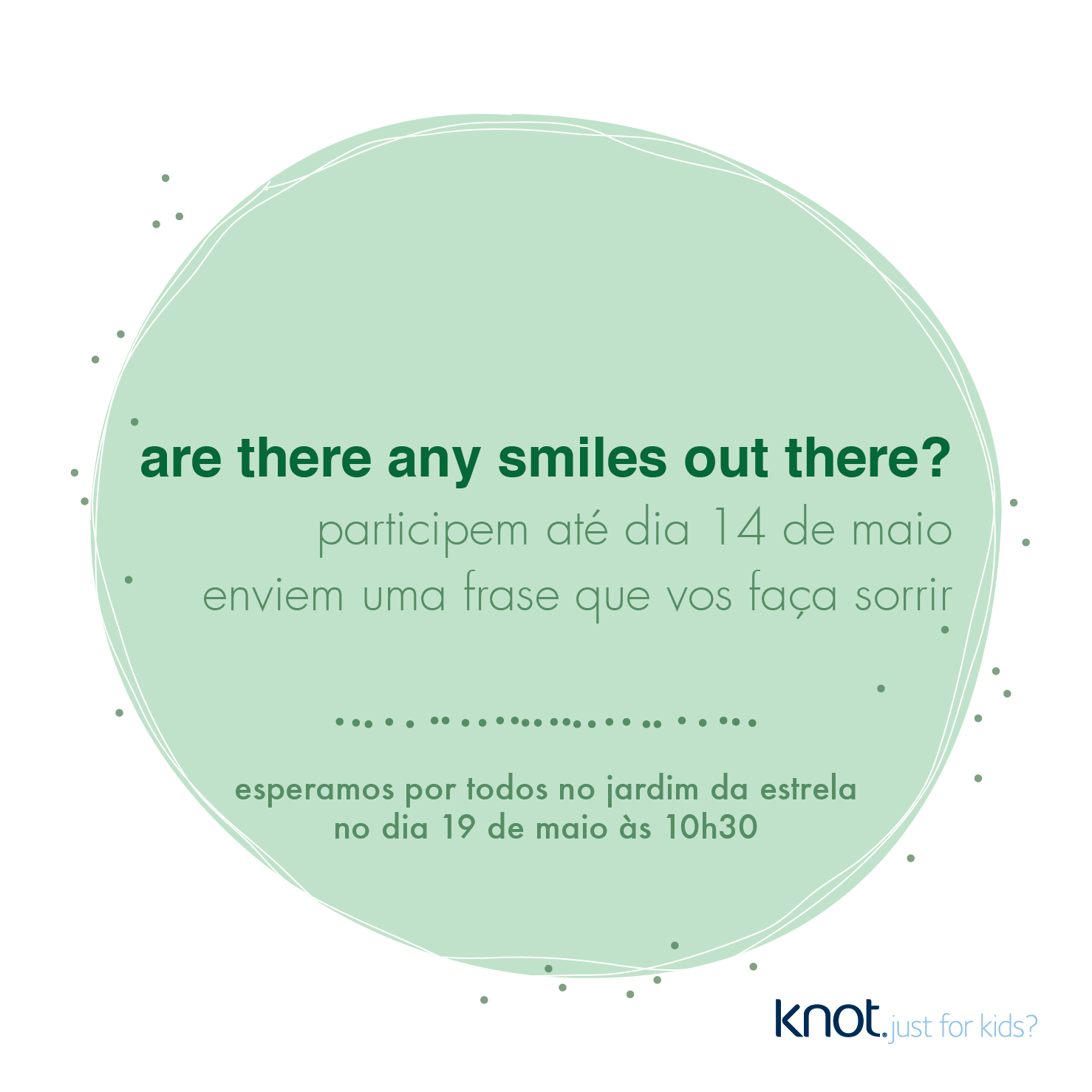 E porque adoro receber presentes, desta ver vou ser eu (mais a Knot, claro) que vos iremos dar um presente especial. Quem quer ganhar uma destas t-shirts tem de me enviar uma foto com a careta mais cómica que o vosso filho consiga fazer. A C. grande irá escolher as três caretas mais engraçadas, por isso não percam tempo, preparem as máquinas fotográficas e enviem a foto mais engraçada até ao dia 14 de Maio para [email protected]. Dia 15 direi quais os vencedores, aqui no Blog. Giro e muito divertido e além do mais uma manhã no jardim cheia de crianças alegres e muito bem dispostas, com programas para a sua idade, melhor não há!