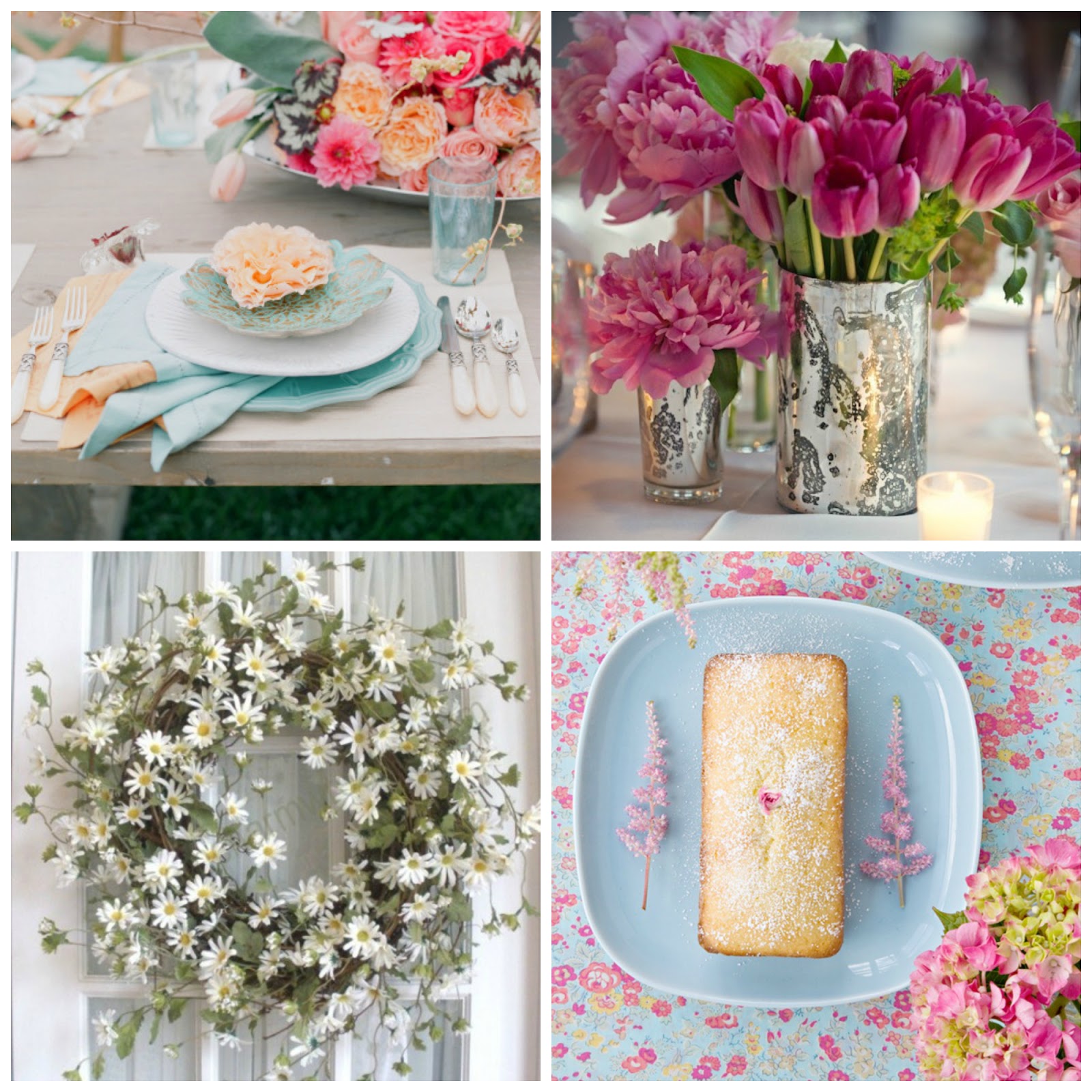 pss- a Páscoa é já este fim de semana, por isso é a altura de começar a decidir e a pensar na mesa da Páscoa e nos arranjos de flores que gosto muito em branco ou cor de rosa, para dar uma ar de Primavera que teima em não chegar..Aqui ficam algumas das minhas inspirações para este ano.