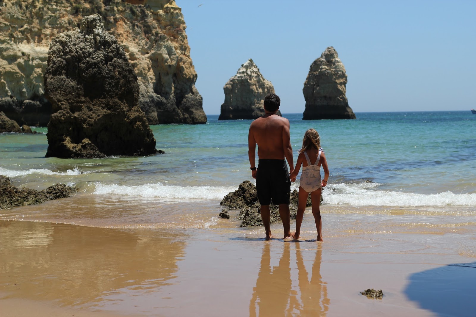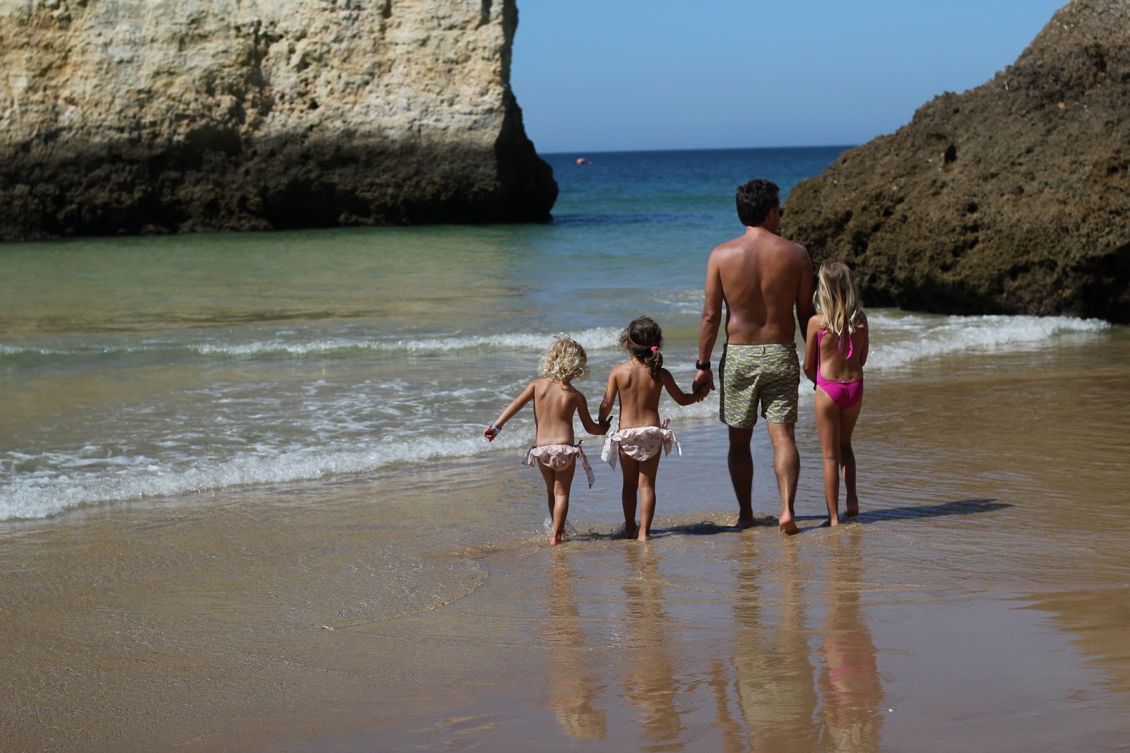 A praia abrigada, nesta altura do ano que ainda não está à pinha, foi uma escolha TOP (nada como os passeios na maré baixa para descobrir praias pequeninas e desertas, dignas de filme que elas adoravam explorar).