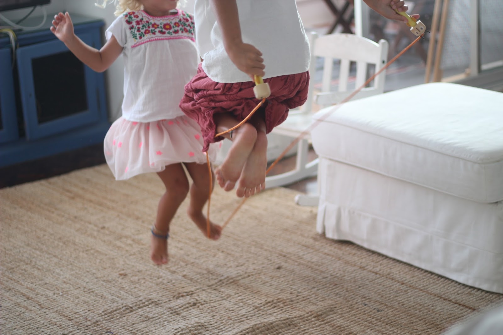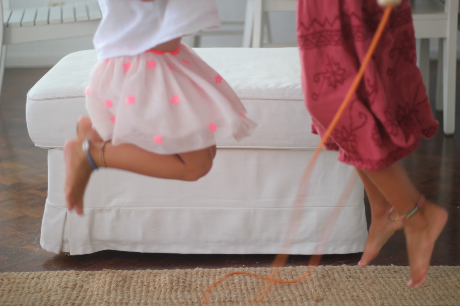 Ontem foi dia de pegar na corda e ensinar a Caetana a saltar.