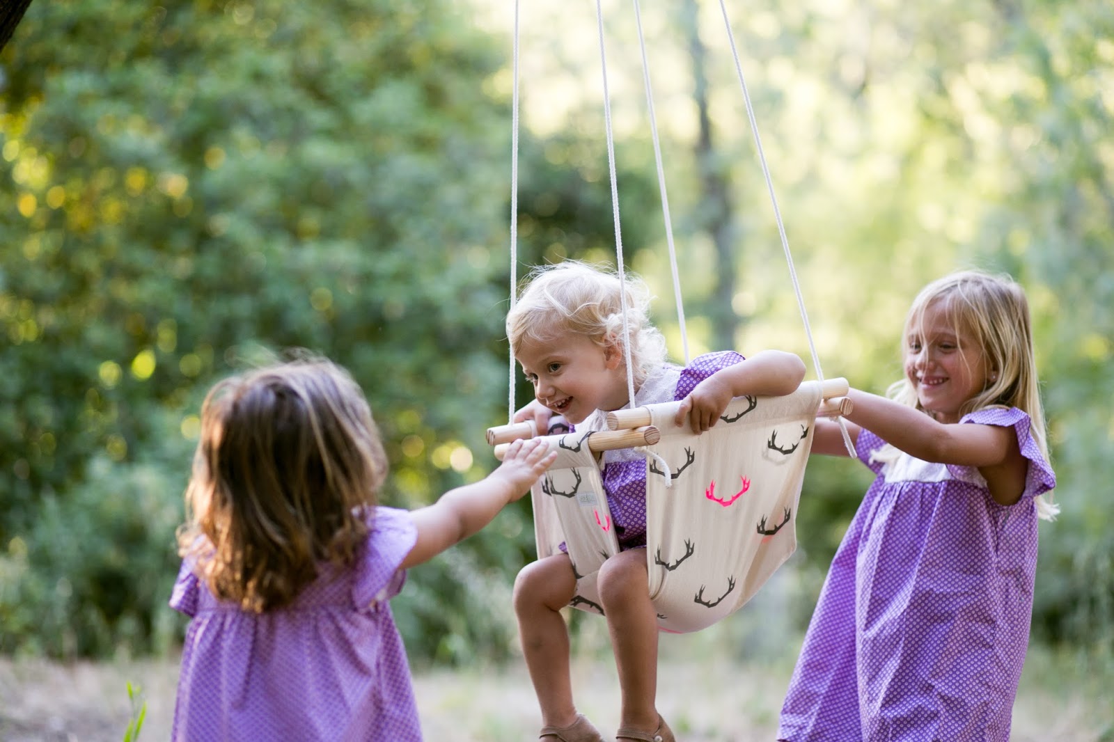 Desde a sessão dos anos da Conchinha (aqui)que os baloiços da SeeSaw estavam “prometidos”. Elas adoraram, mas em casa ter um baloiço para um pai que odeia furos na parede não era hipótese. Até nisto o bom tempo, o sol e o calor fazem maravilhas…se Maomé nao vem à montanha, a montanha vai a Maomé e a cabeça engenhoca do pai deu uma óptima ideia, que muitas de vocês com maridos iguais (furos na parede e tectos nem vê-los) vão gostar. O que eles não fazem para ver os seus mais que tudo felizes e contentes! Os baloiços estão tão bem feitos que podem ser levados para o jardim e pendurados num tronco de árvore (forte e resistente, claro) para que os miúdos se divirtam, baloicem e empurrem, até cair para o lado.