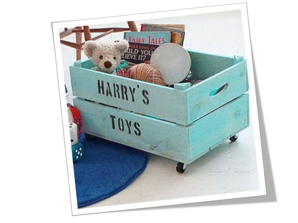 Que giro pode ficar um caixote da fruta vazio, com uma simples pintura. Uma cor gira, umas rodinhas para o tornarem ainda mais prático e voilá…adoro!