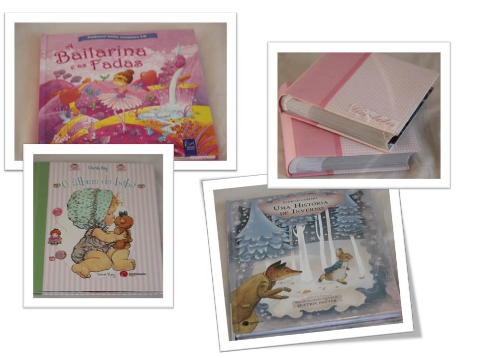 Os livros de princesas e os do Peter Rabbit, da Beatrix Potter são dos mais escolhidos, por aqui. As ilustrações são lindas e as histórias deliciosas. Os álbuns de fotografias são algumas vezes opcção porque a Carlota adora ver-se quando era bébe, delira com as fotografias das suas festas de anos e não percebe porque a Conchinha não aparece na maior parte delas. Pergunta várias vezes onde está, porque não está…