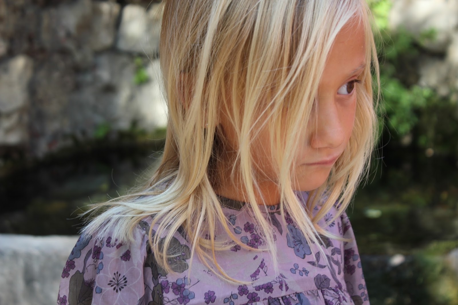 A Carlota está cada vez mais menina, apesar dos muitos dias que continua a preferir coisas de rapazes, como roupas e desportos. Adora os dias de ginástica e os dias que os amigos a deixam jogar futebol mas depois, acorda outros que me pede para levar vestido e sapatos de fivela. Já se preocupa com o penteado, se bem que não levar nada na cabeça é para ela o melhor e o que menos dá nas vistas e só muda de ideias, nos dias que a Conchinha vai de tótós, tranças, ganchos ou fitas (esta ao contrário da irmã mais velha gosta é que olhem muito para ela).