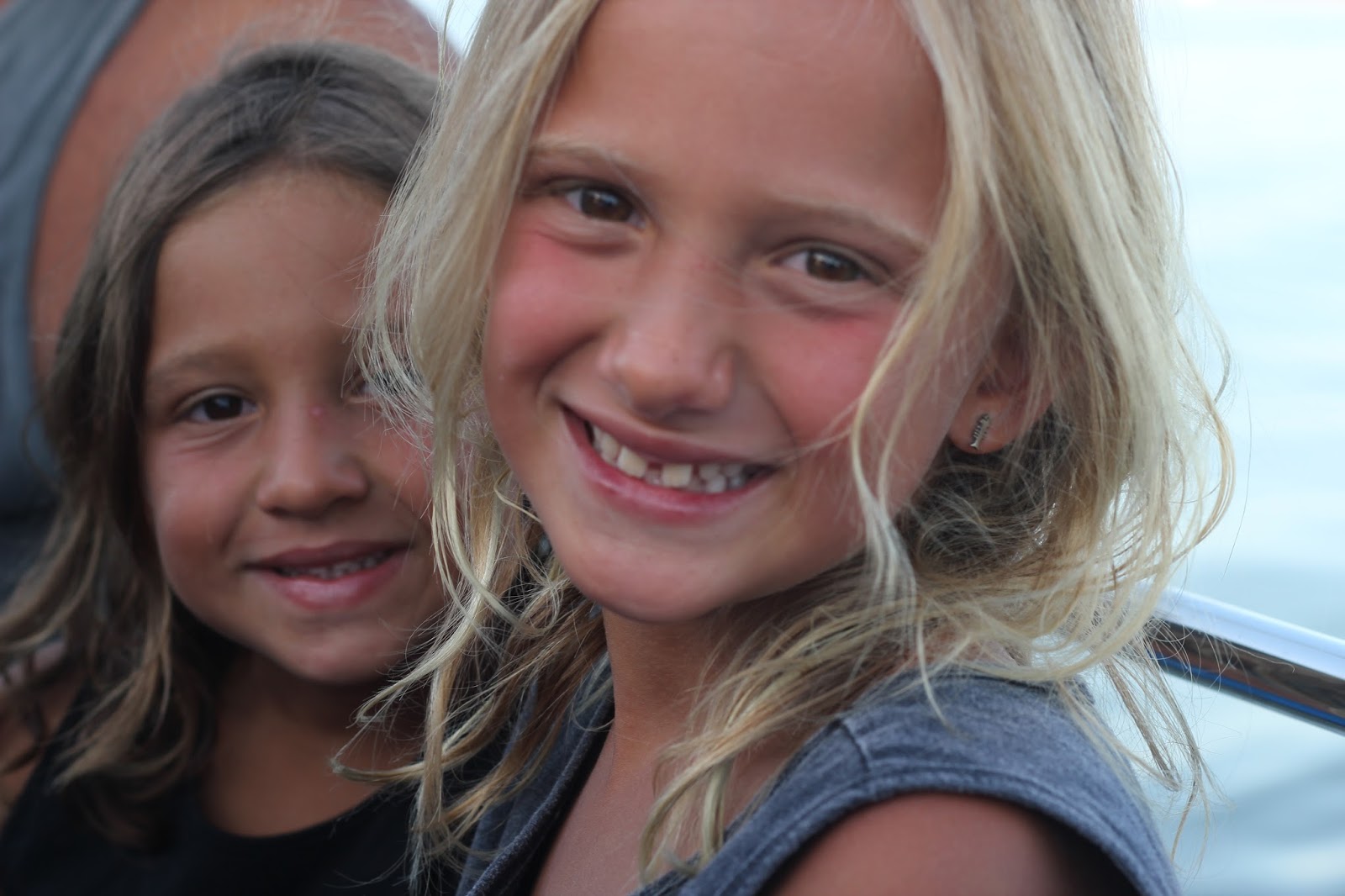 Ana reparei que as meninas ficam com a cara muito vermelha depois da praia.