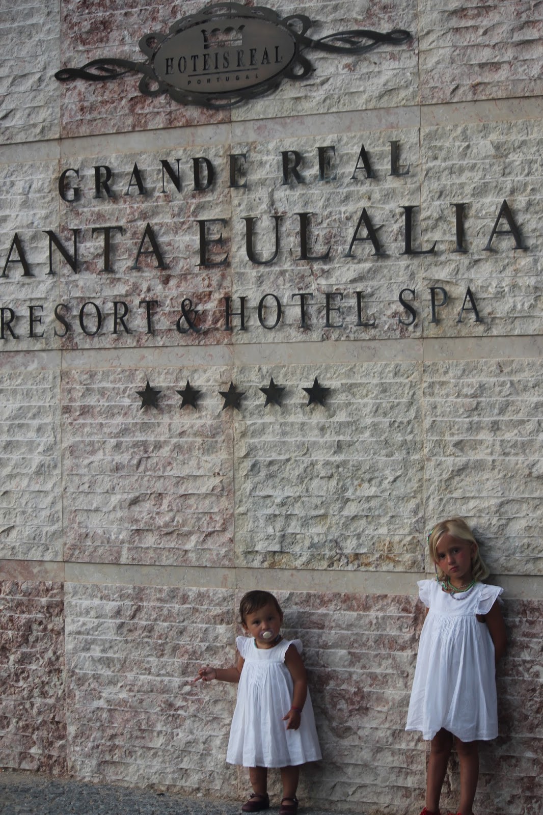 Ficar uma semana no Grande Real Santa Eulália Hotel, mesmo com três miúdas, uma com 4 anos, outra com 1 ano e meio e a última com apenas 1 mês, deu para ter o tão desejado sabor a férias e descanso. Para isso contribuiu o tudo incluído, mas que vale a pena, vale e muito. Acordar e ter apenas de escolher qual o kit que tinham de vestir, decidir se iríamos para a praia ou ficávamos na piscina, se almoçávamos às 13h ou às 14h, se jantávamos fora ou dentro, no restaurante da praia ou no do hotel eram essas as nossas grandes preocupações. A rotina praia, piscina com miúdas pequenas é o ideal. Elas adoram, entretêm-se a dar mergulhos e a brincar e caem na cama muito antes do que o que desejamos em tempo de aulas e colégio. Melhor, impossível. Claro que para isso ajudou o nosso horário à Inglês, que eram 19.30h e lá estava a família Lemos prontinha para jantar. A mini C. foi um amor e portou-se melhor do que o esperado. Na sua alcofa ( a do carrinho) lá ia ela para todo o lado. Ter um chapéu de sol, e uma cadeira para me sentar confortável a dar de mamar na praia e muitas sombras na piscina ajudaram a que tudo corresse bem e sem o stress de horários por causa do sol que, já aqui disse e repito, para irritação de muitas acredito, não fazemos também contribuiu para os nossos dias de férias.