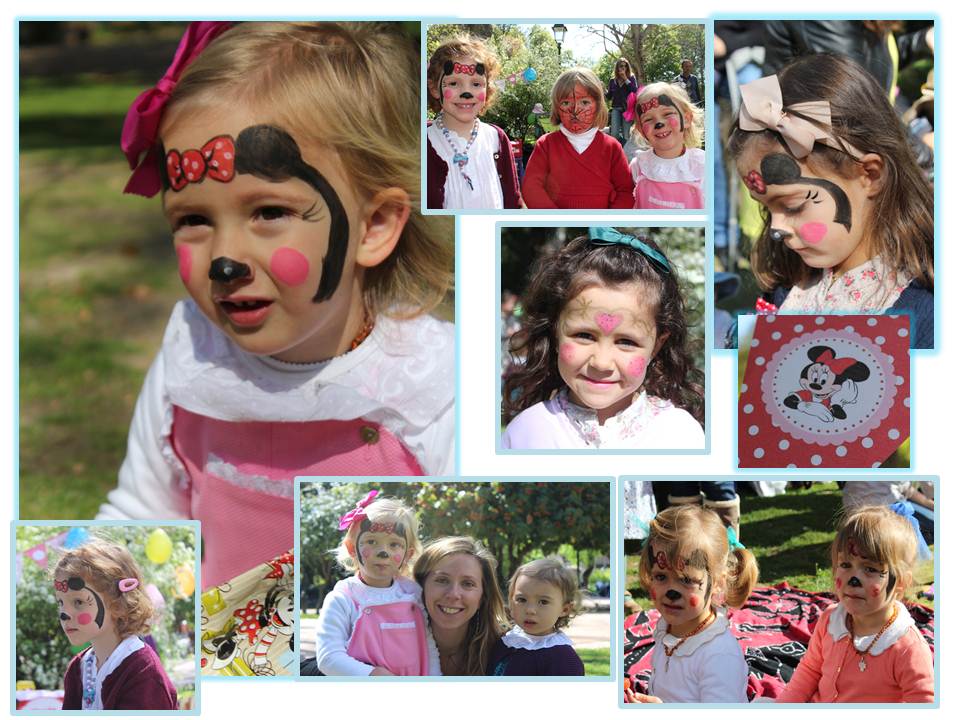Á Terra do Nunca pedimos uma pessoa que pintasse as cara das amigas da C. de little Minnies e os amigos de Mikeys Mouse…e foi um sucesso. (valeu mais a pena do que comprar mascaras, não imaginam os preços que pedem por simples máscaras de papel que os miúdos rapidamente se chateiam e tiram)..Ficaram o máximo, todos, ou quase todos de cara pintada! Obrigada Raquel eles adoraram!