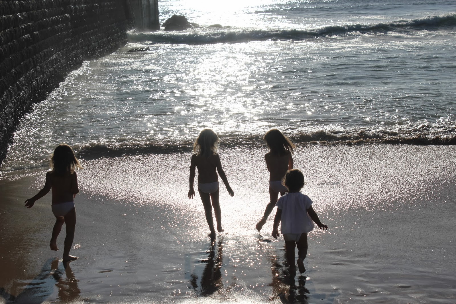 Quando chegamos ao fim de semana e conseguimos ter um tempo fantástico, sol e ainda algum calor, não podemos ficar mais contentes. Este foi um desses que nos achamos uns sortudos, depois de uma semana horrível, cheia de vento e chuva. O dia de hoje esteve tão bom, que ainda deu para tirar a roupa e molhar o pé. Perdemos a vergonha, perdemos a pose de meninas sempre impecáveis e lá estavam as Cs. felizes com as grandes amigas L e M, de cuecas a brincar no mar. Um dia de Outono que soube a Verão, um dia que deixou 4 miúdas de rastos de tão cansadas, e felizes depois de uma noitada just girls. A C. grande ficou radiante, ontem com o convite das amigas para lá jantar e dormir. Foi uma risada e uma animação, aliás é sempre que se juntam as 3, agora 4 porque a C. pequenina também já começa a alinhar nas brincadeiras delas.