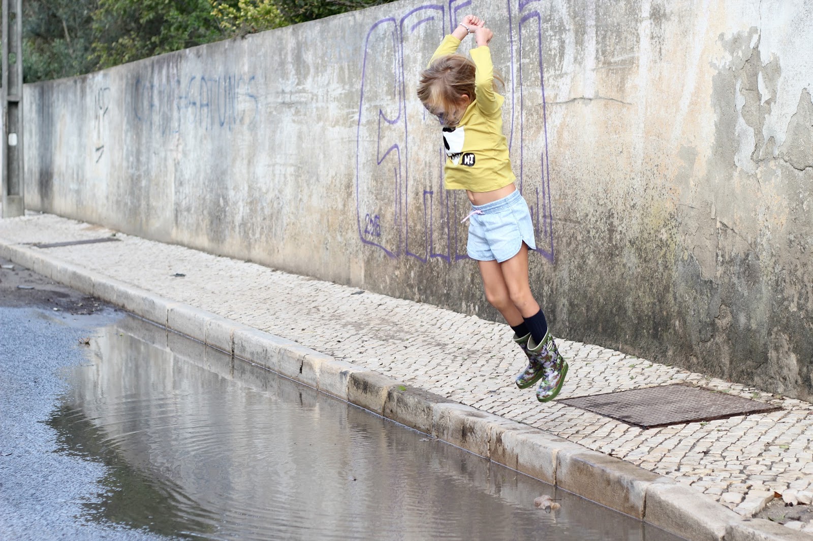 A sério q deixa a sua filha saltar em poças imunda s como a da foto? Dá nojo só de olhar! Ainda se fosse um lago ou q lugar perto da natureza… Agora no meio da estada e rua suja? As havaianas ficam muito mal representadas… É a sua imagem também pede um maior cuidado, parece está de pijama, ou ent aquelas ciganas que andam vestidas de qualquer maneira