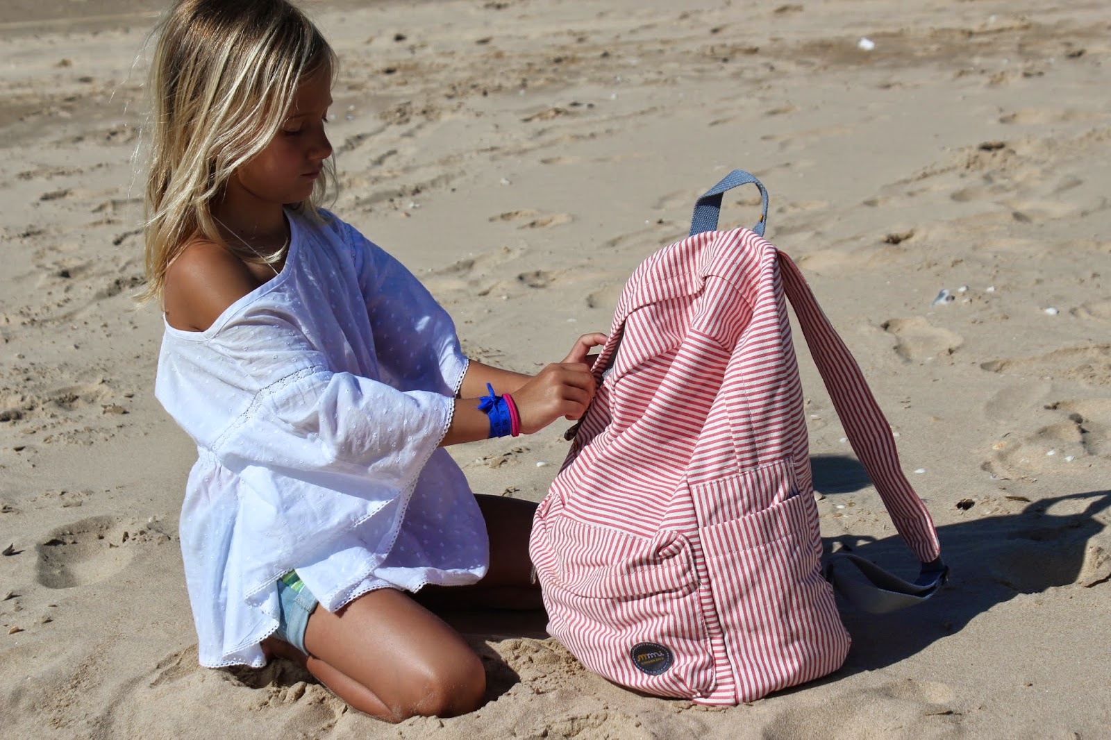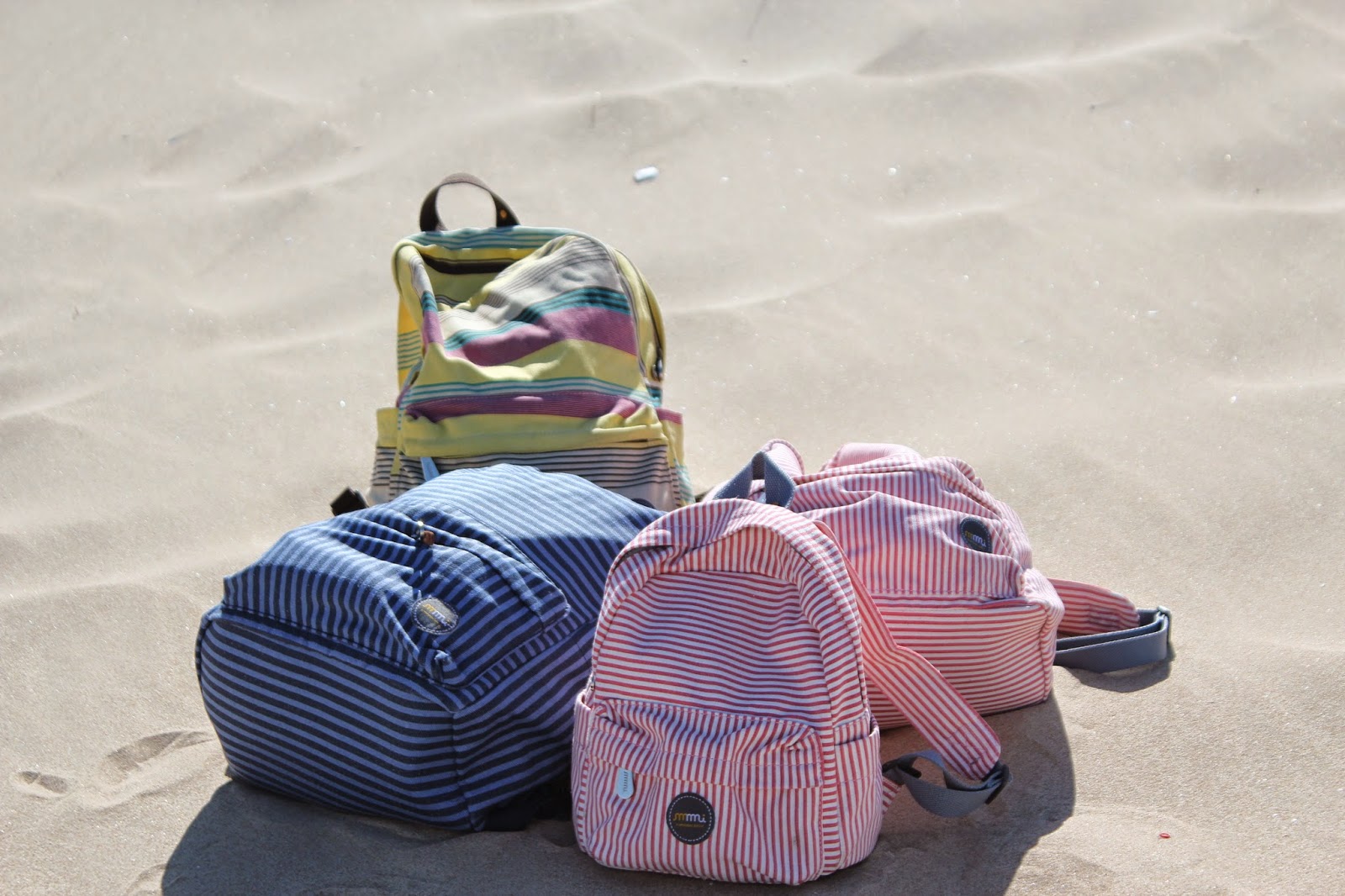 Há muito tempo que as Cs pediam uma mochila como a mãe. Queriam ajudar a levar as coisas para a praia e muitas vezes havia brigas para ajudar a transportar (sim é verdade daqui a uns anos vão tentar empurrar umas para as outras estas tarefas, por isso o melhor é aproveitar enquanto querem) os brinquedos e as comidas. A MMI loves you tem tantas coisas giras para elas e para nós que tinha de ser o sítio onde encontrei não só para elas, como para mim. Adoro riscas e adorei estas, com um estilo simples mas cheio de pinta, tudo a ver com praia, surf, e miúdas radicais. É que nem o pai escapou e até ele gostou da que escolhi para ele. A C. pequenina que está a passar uns dias a sul (já só faltam dois para voltar, mas vão ser dois que mais vão parecer 10, tantas são as saudades da nossa pestinha), ficou fascinada com a mochila que a C. grande teve nos anos desta marca, a que podia ser desenhada e vai ter uma surpresa quando chegar. Para ela, uma mini mochila de ganga que vai ficar o máximo cheia dos desenhos que vai fazer.