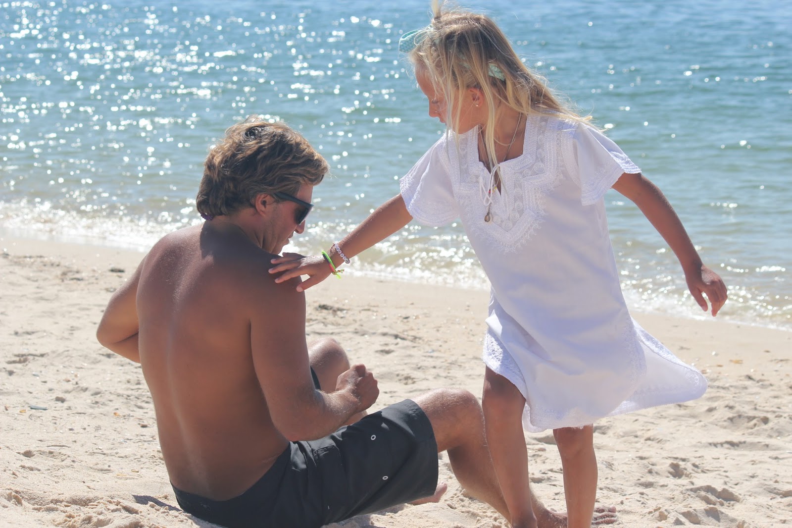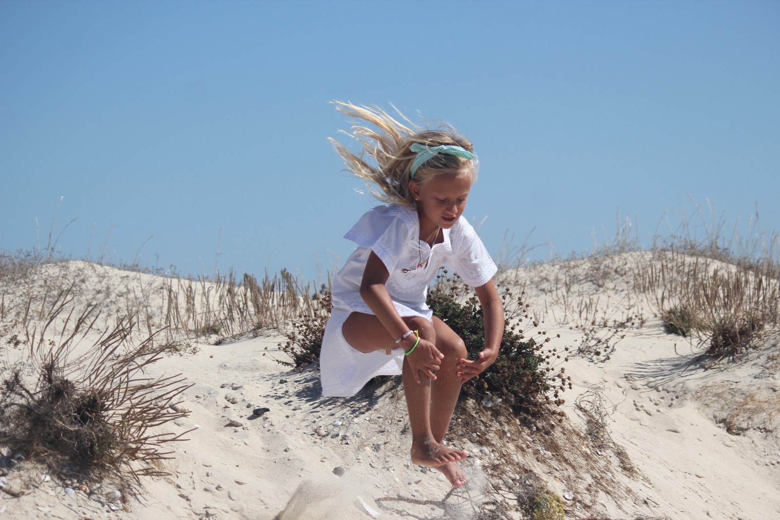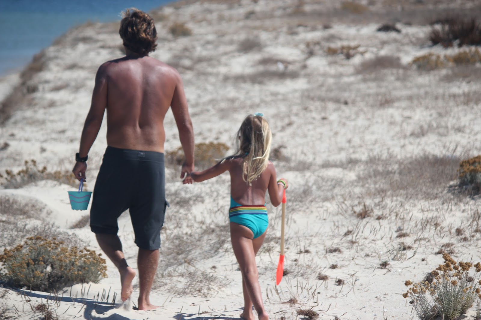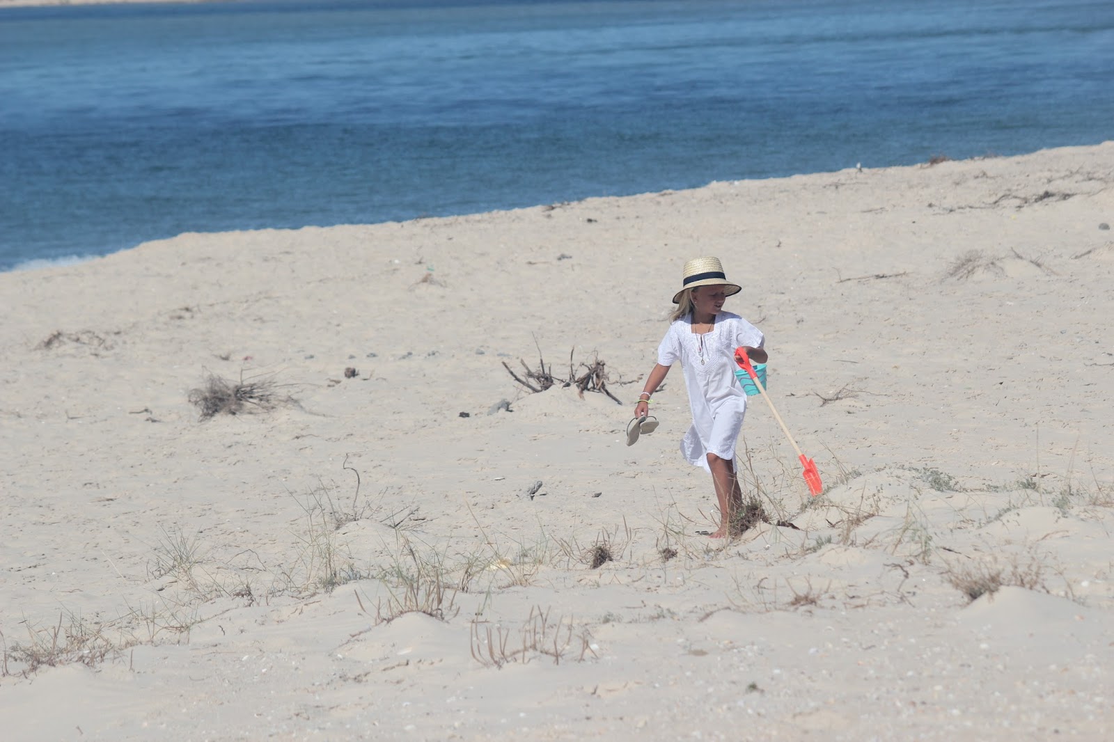 Os dias foram passados na praia a apanhar muitas conchas para trazer e fazer colares giros que as Cs vão oferecer neste Natal (este é o paraíso das conchas, com milhoes espalhadas pela areia, onde foi fácil encontrar imensas já furadas). Fez Sup (mesmo sem remo com a sua pá gigante), deu saltos nas dunas, deu mergulhos, fingiu que fez kite surf com o seu papagaio, fez castelos e até pinturas com argila ela fez. Foram dias calmos mas com imensas coisas para fazer, não fossem pai e filha verdadeiros “caçadores de aventuras”.