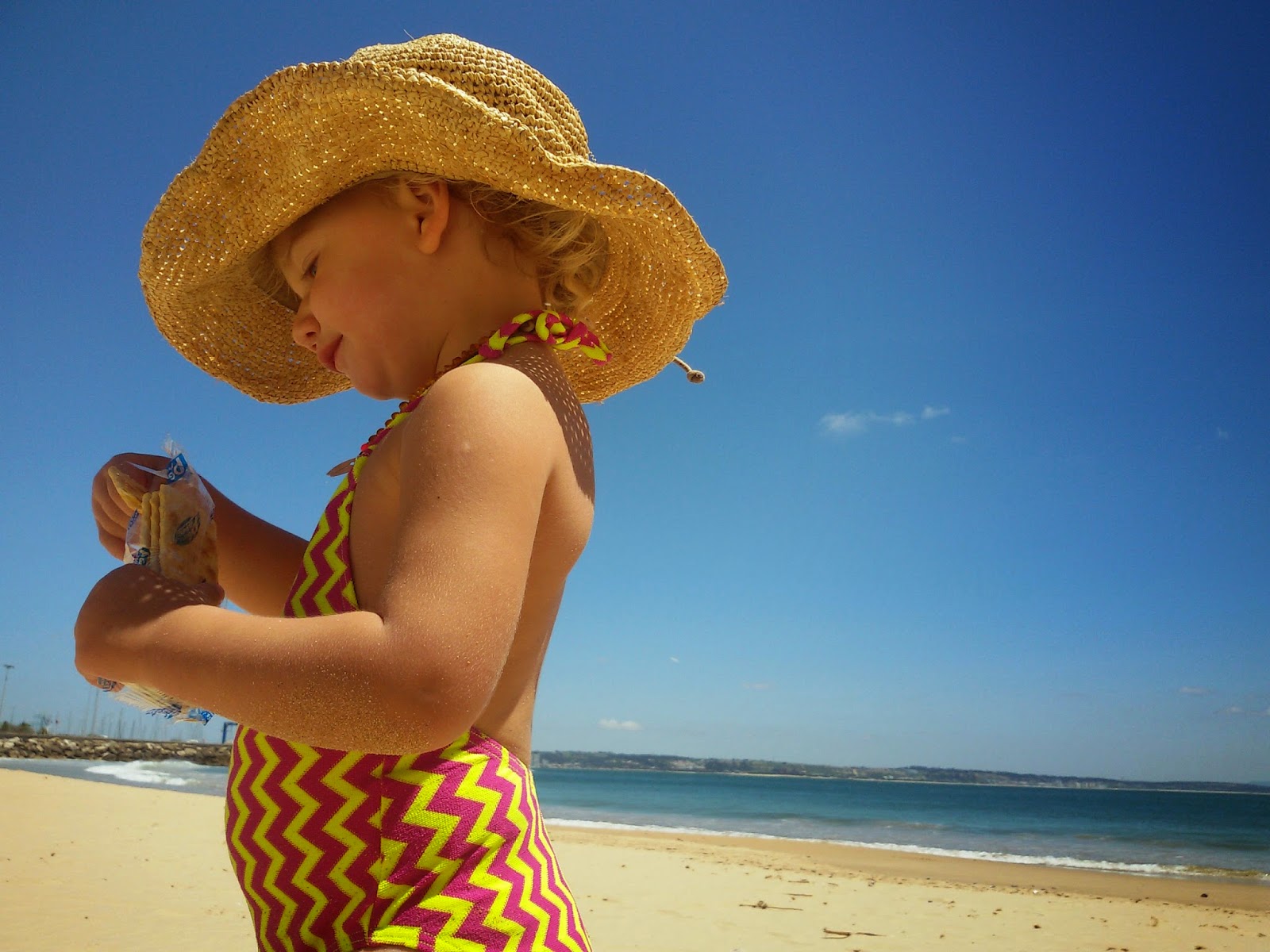 Praia de manhã, com esta miúda querida cheia de pinta com um dos fatos de banho que mais gostei para elas, este ano. Cores fortes e um modelo que fica um amor. Suuim, é uma das marcas mais recentes que tem surpreendido com os seus fatos de banho que fazem sempre imenso sucesso.