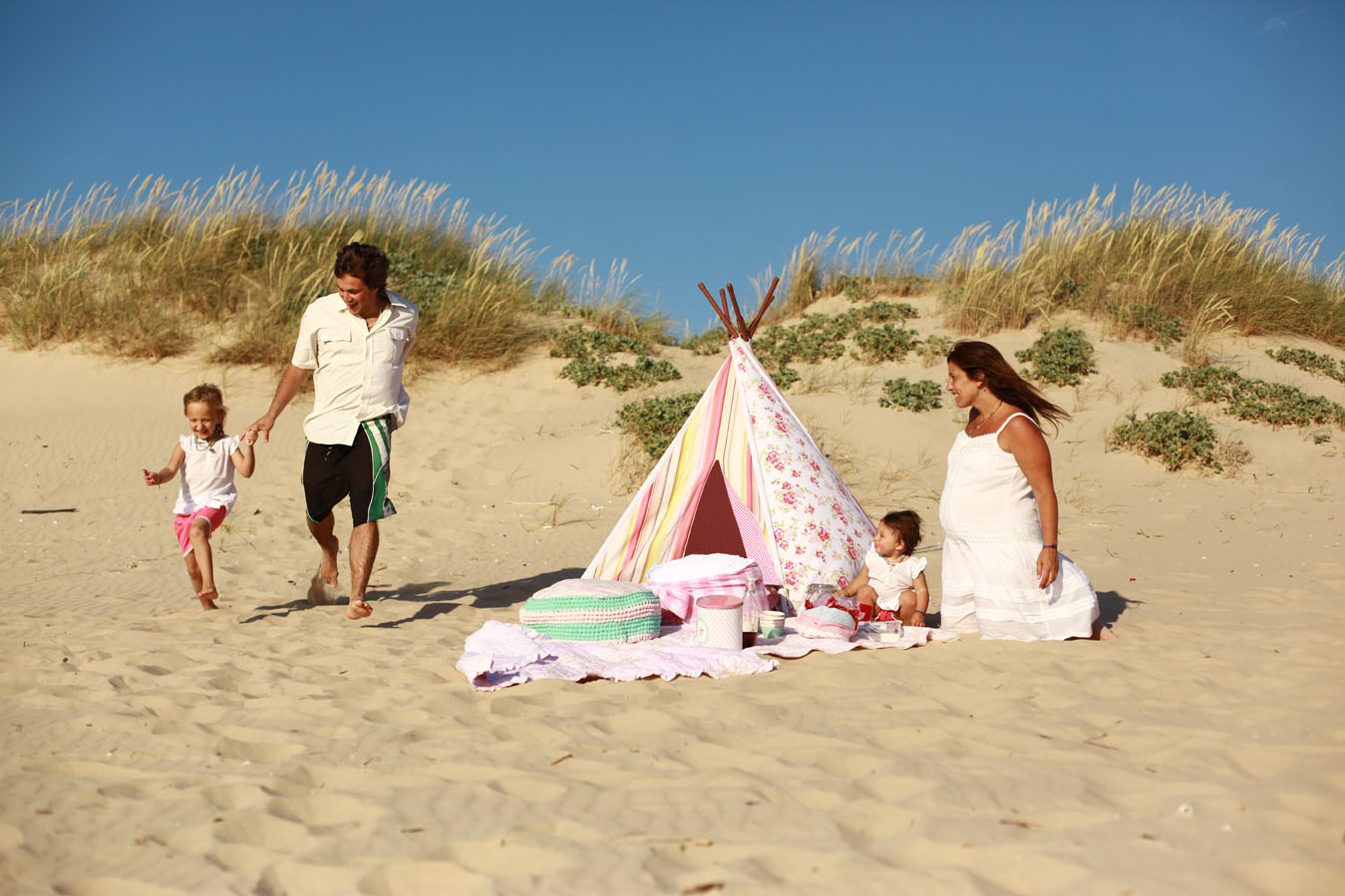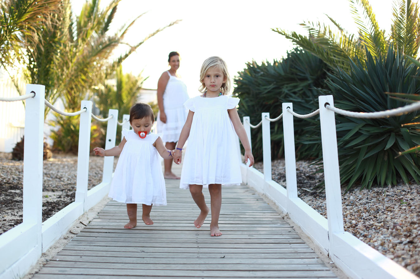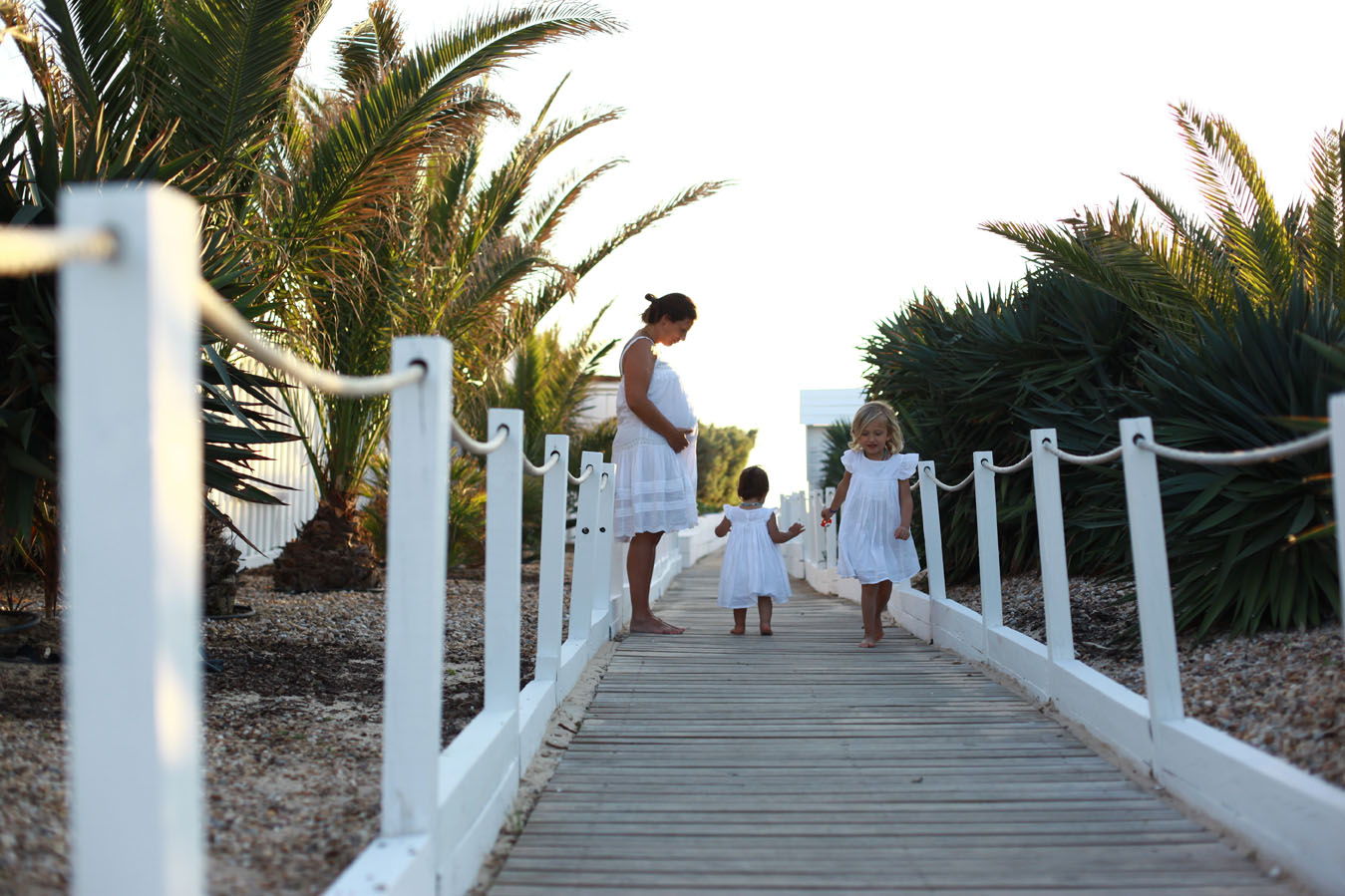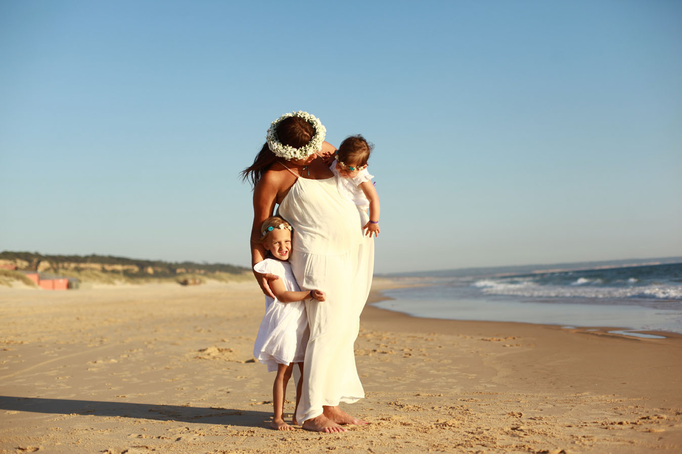 Esta última sessão teve um significado ainda maior porque para além da sessão de grávida, que fizemos no mesmo sitio da primeira, quisemos fazer no dia que fazíamos 5 anos de casados. A data era especial e o momento também, 5 anos, 2 filhas que adoramos e uma terceira a caminho. Vão achar piroso, vão gozar, etc…mas nesta praia e na presença delas, quisemos voltar a trocar anéis e olhares como no grande dia que dissemos o sim. Pensei em tudo. Os vestidos brancos, a coroa de flores, tudo a ver com praia e com o cenário que imaginei se um dia tivesse casado lá, mas desta vez só nós e as miúdas. Achei que seria romântico e foi. Claro que trocas de olhares entre dos dois foram difíceis porque os olhares iam todos para elas que não pararam nem estavam assim tão interessadas a ver o pai e a mãe voltarem a colocar no dedo um anel feito das canas das dunas, correr, saltar e brincar é bem mais divertido e era isso que queriam fazer nesse dia, na praia que parecia toda nossa, sem ninguém para observar. Mesmo assim adorei, e adorei que tivesse sido a Mariana e registar estes momentos só nossos.