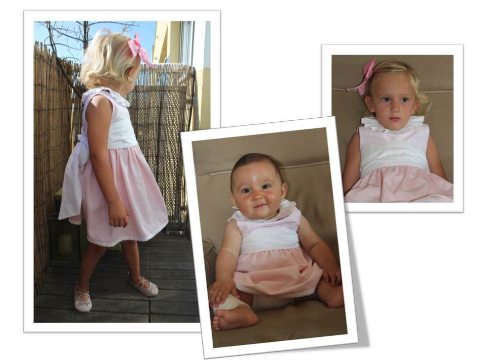 O kit das Cs. foi amor à primeira vista e um desafio proposto à C and F newborns, mal vi as roupas queridas que ela faz. Porque nenhuma já usava cueiros, pedi que me fizesse uns vestidos para as elas. Os vestidos que não podiam ter ficado mais amorosos que fizeram um sucesso na festa de hoje e que fizeram delas umas bonecas que adorei.