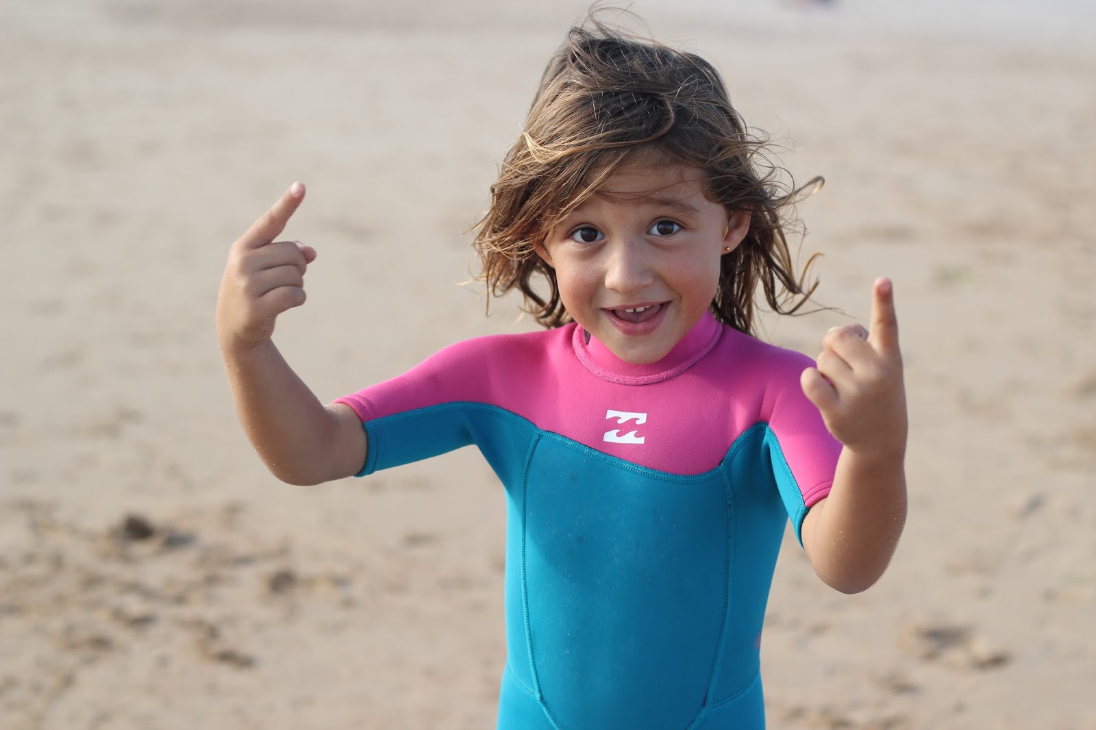 A Carlota já pediu algumas vezes e não é novidade pegar na prancha e ir com ele para o mar, mas a Concha foi a primeira vez que o fez e fê-lo com a cara mais querida e com a voz mais decidida que fez o pai corar de FELICIDADE.