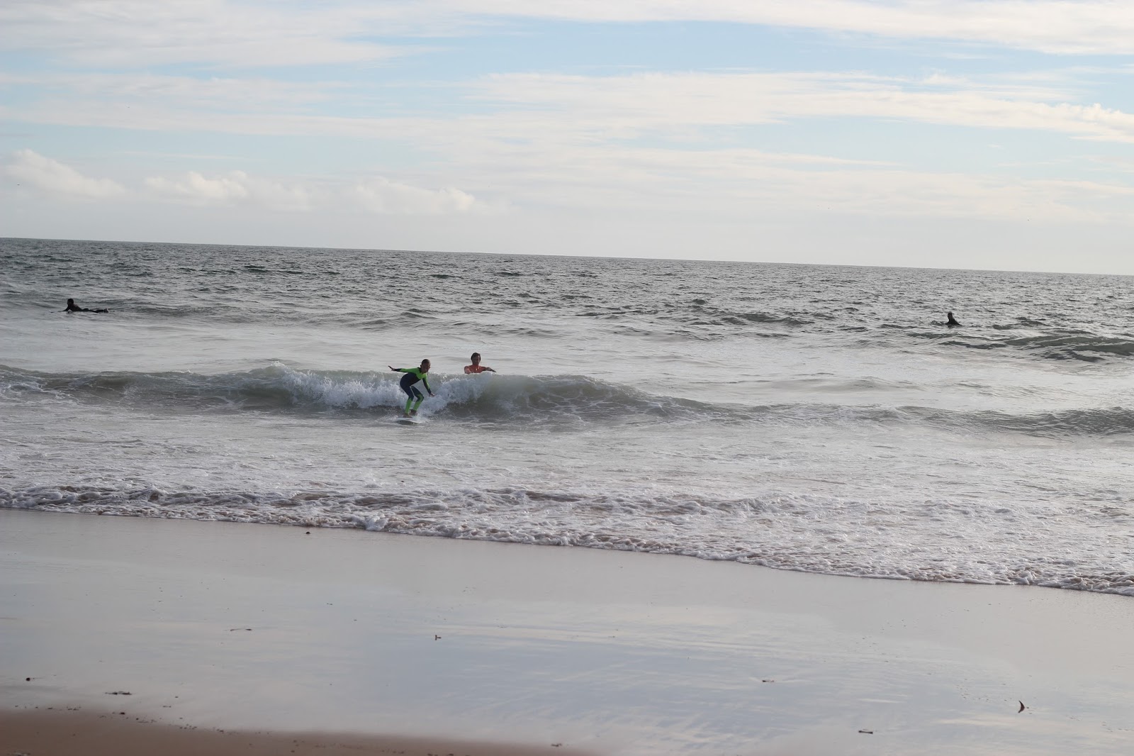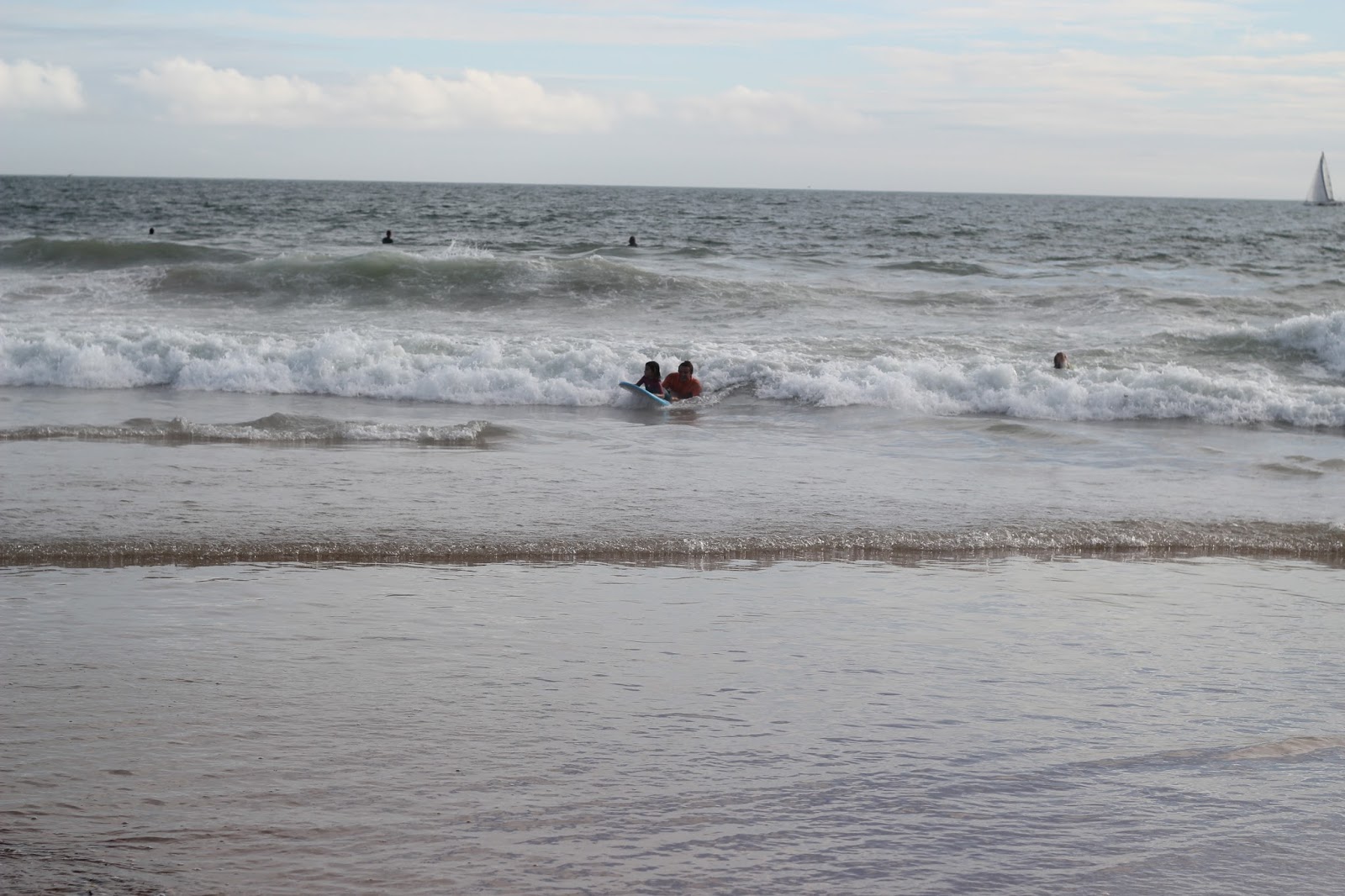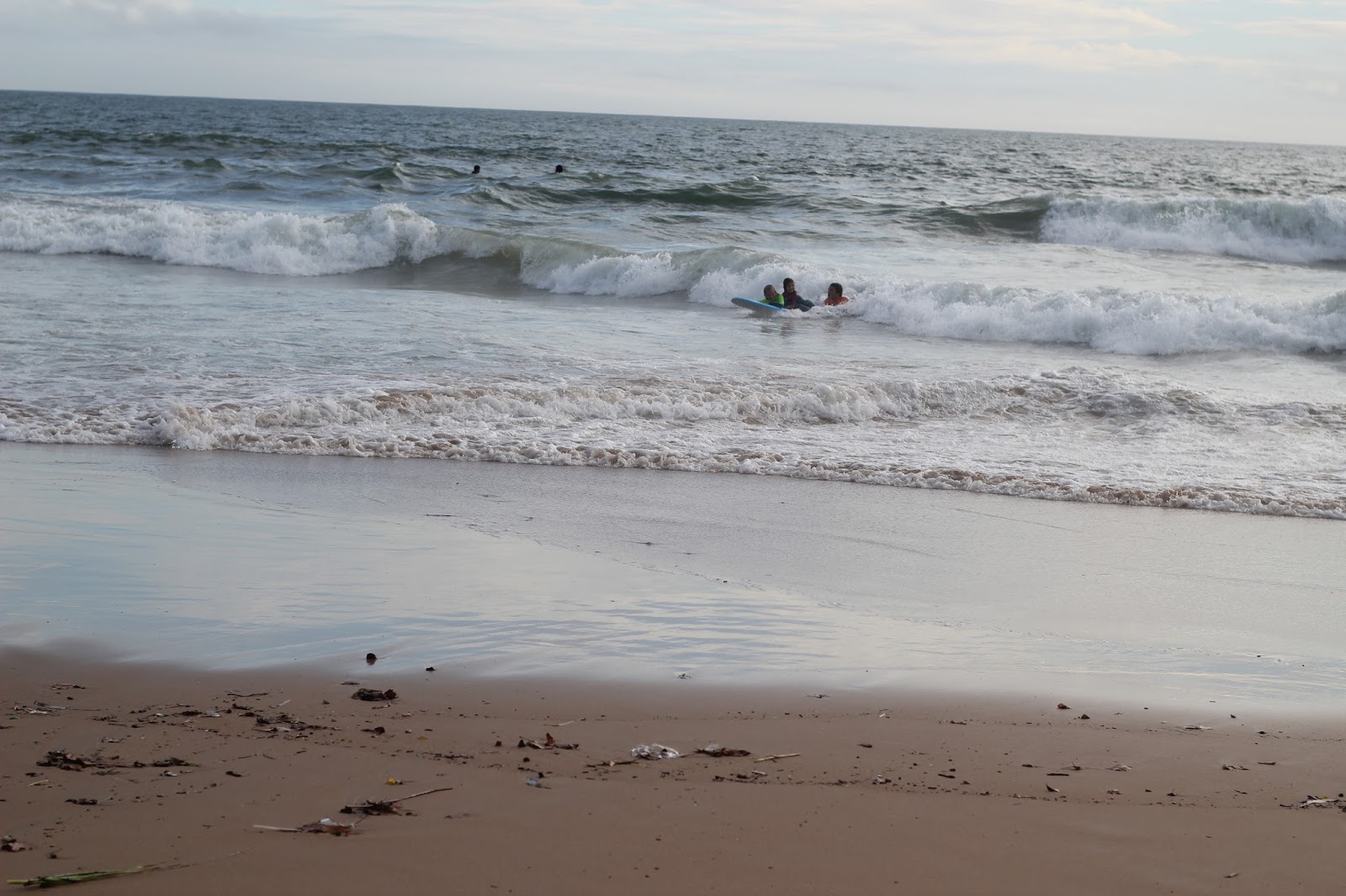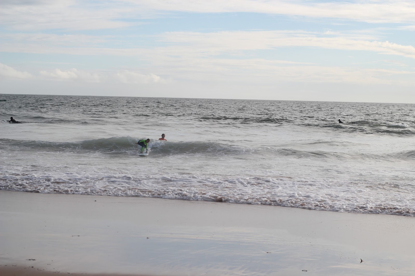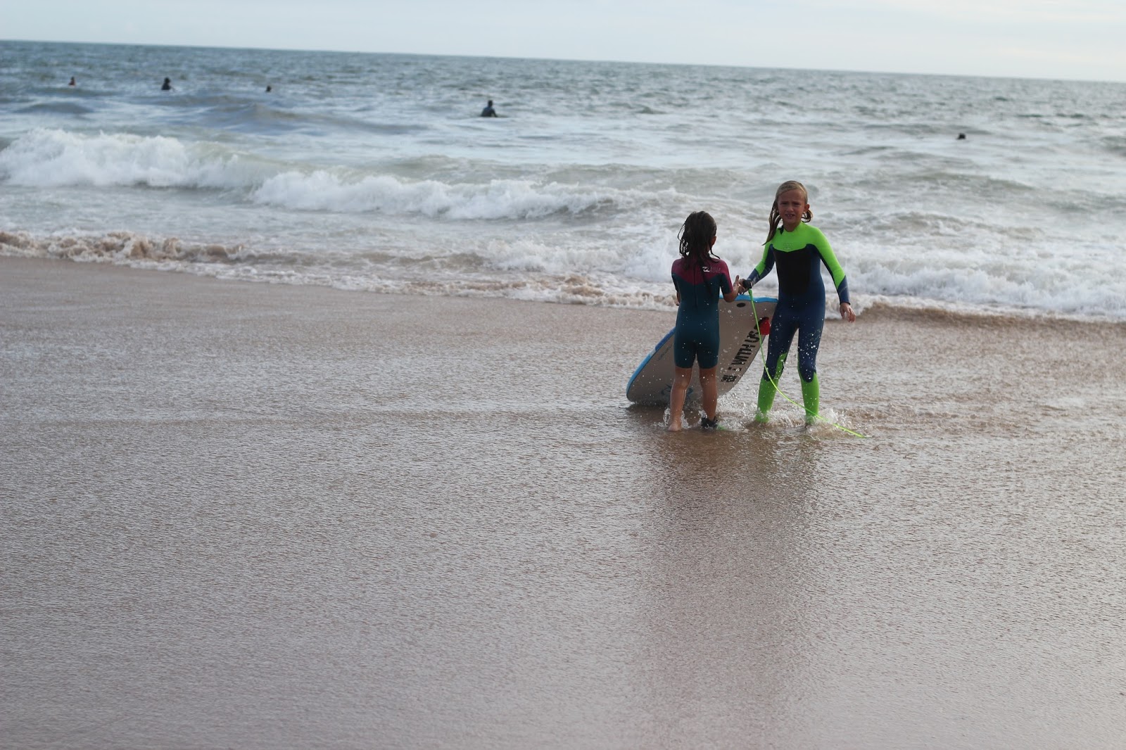 Um mix de surf e body board (a Conchinha ainda não se consegue, nem arrisca a pôr de pé)