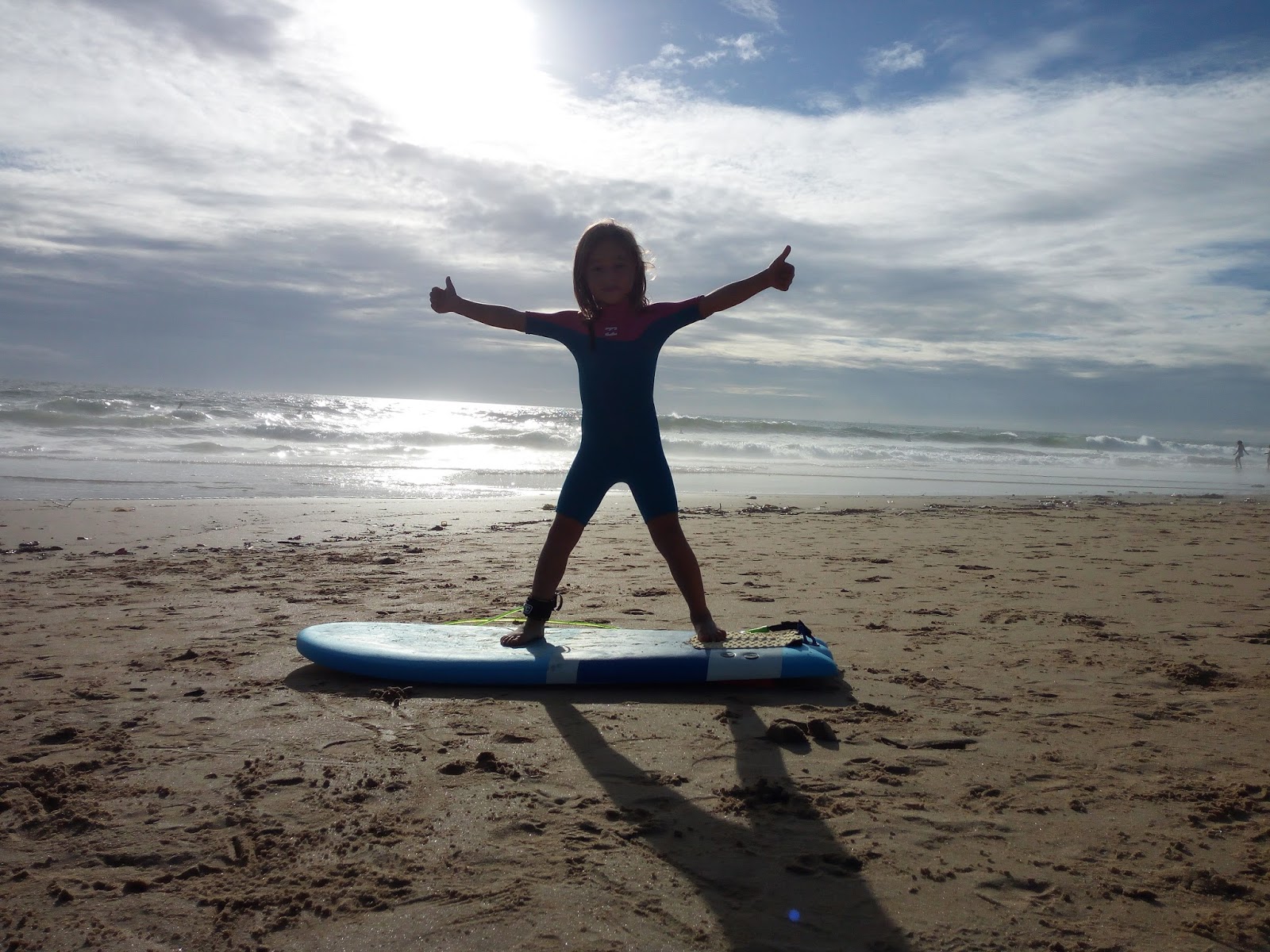 a nossa mini surfista que vai mostrando o que tem aprendido com o pai e nas aulas que já teve com professores