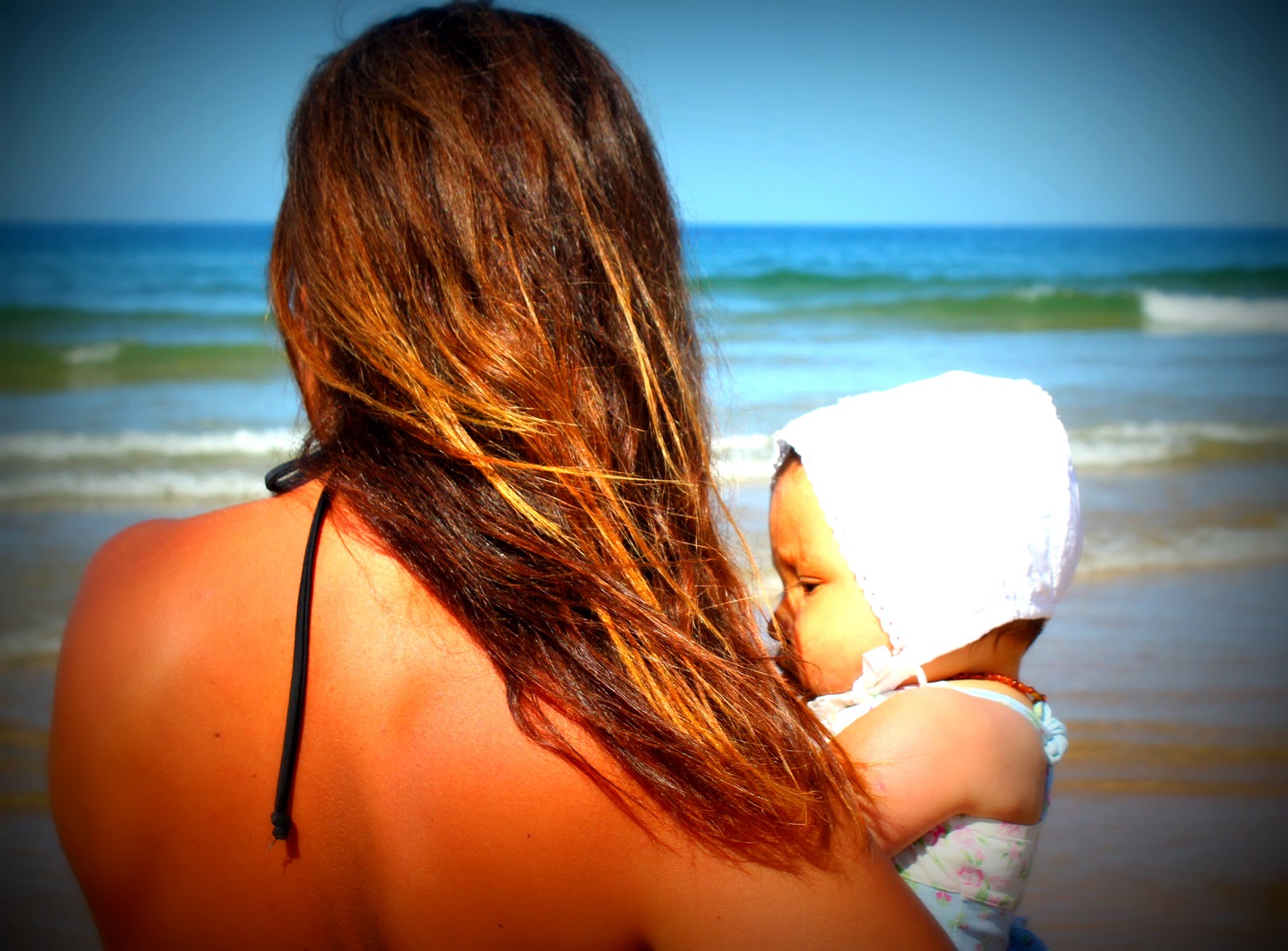A praia estava óptima, a C.pequenina adora molhar o pé (o bom claro), está desejosa de andar, andar, andar. Cada vez mais curiosa é vê-la rodar a cabeça de um lado para outro, atrás das vozes das pessoas, dos meninos que brincam e correm, de tudo o que tenha movimento. Que crescida.
