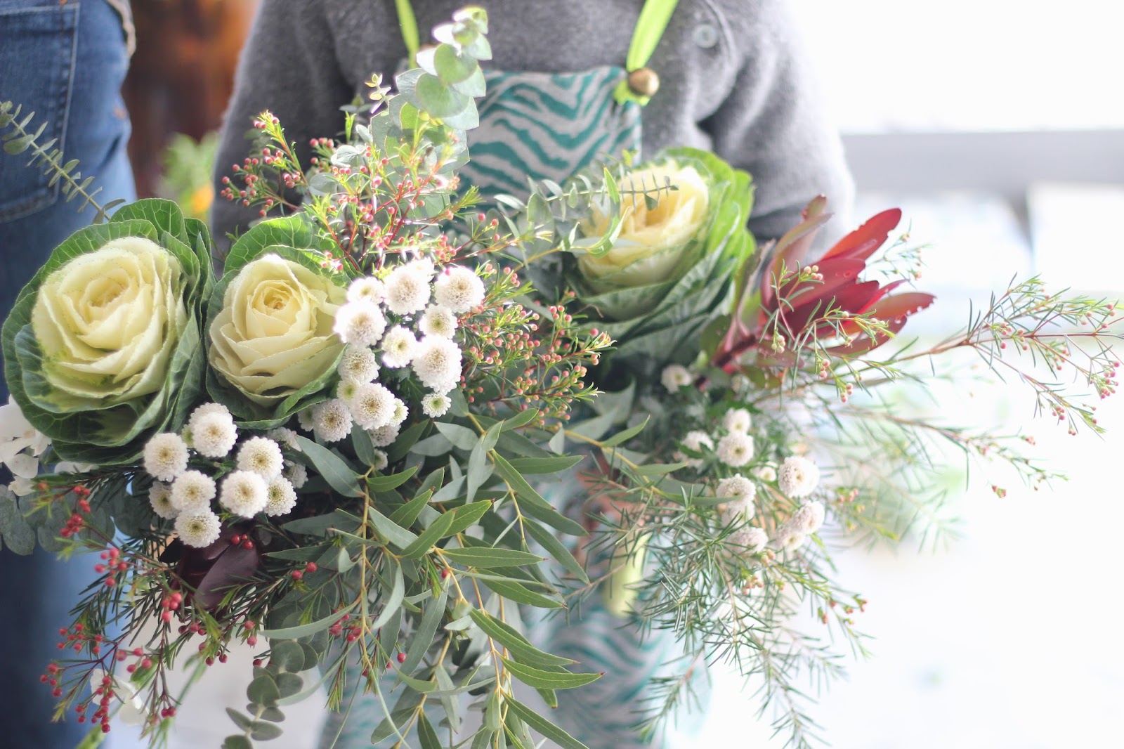 Entre uma ida ” às compras” das flores para o meu arranjo, entre um limpar de caules, um cortar de pés e mais uma ou outra boa dica da Maria, os arranjos ficaram LINDOS e prontos para trazer para casa ou oferecer.