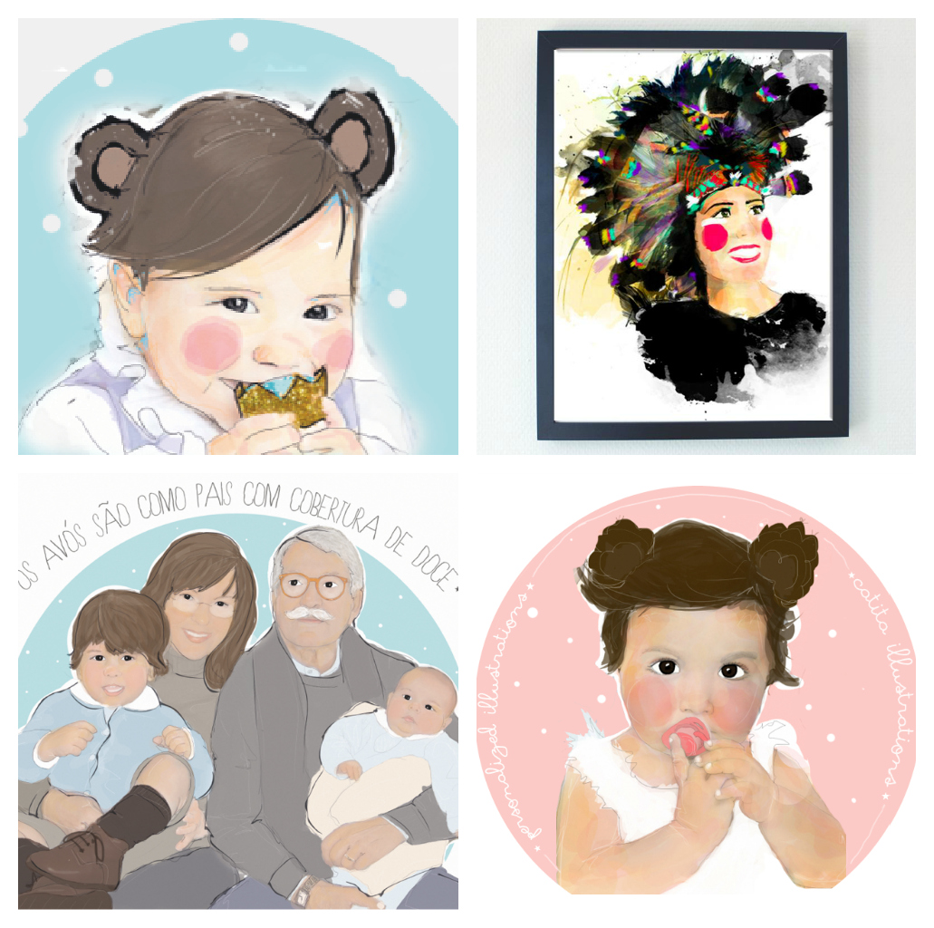 ps – Descobri a Catita Illustrations quando navegava pelo Pinterest e fiquei apaixonada pelo seu trabalho. Acho o máximo os quadros dela e são presentes tão giros e originais. Podem ser dos filhos, da família ou mesmo de nós próprias…quem ficou com desejos de ter um assim?