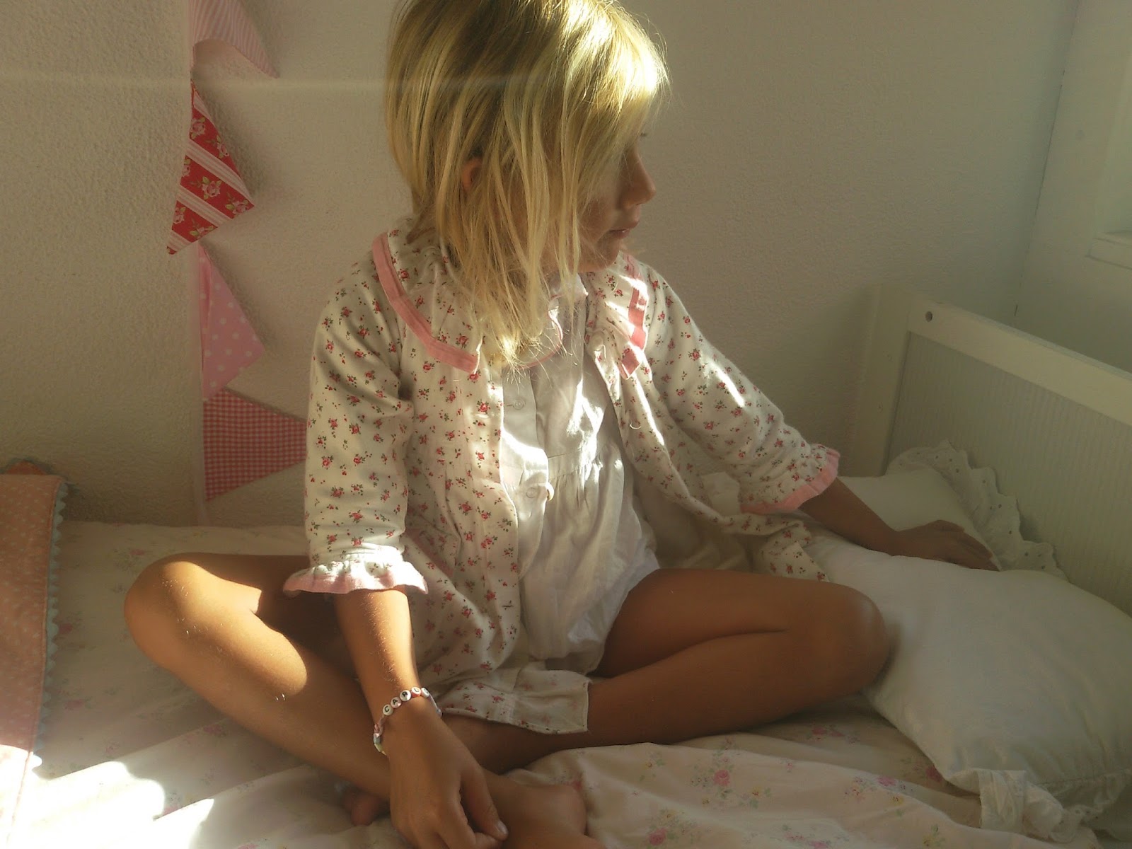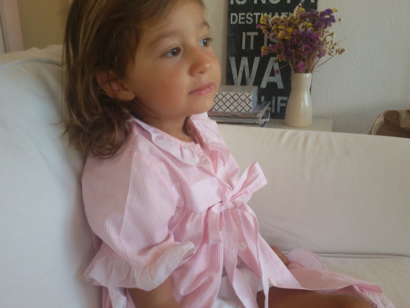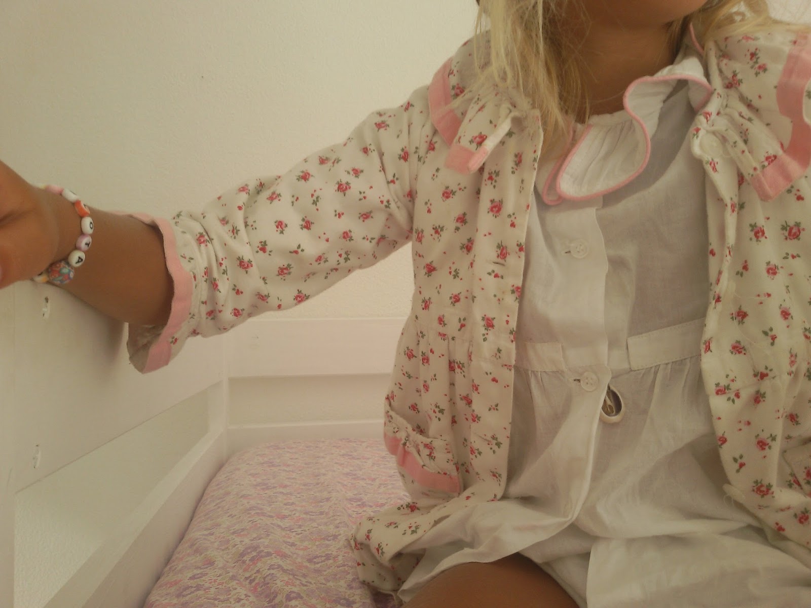 A hora do banho cá em casa é a diversão total para elas. A hora de estarem todas de banho tomado, cheirosas (por aqui continuamos fiéis ao Musti, ao Denenes, ao perfume da Knot e ao da Uriage), penteadas e de roupão vestido, sossegadas sentadas no sofá é aquela que mais gosto de estar a olhar para elas, ali tão queridas e bem comportadas, nem que sejam 2 minutos. Aqui em casa o banho é um óptimo relaxante e calmante destas 3 endiabradas que parecem tantas vezes ligadas à corrente, principalmente as 2 mais novas. Se há peça de roupa querida que tenho pena de nunca mais ter visto à venda, são roupões, daqueles que antigamente se faziam, com golas, folhos e fitas com grandes laços. Elas ainda têm dois, apesar de começarem a ficar pequenos e haver sempre uma que já não vai ter, mas que continuo a achar que ficam um amor, continuo. Ainda por cima acho mesmo uma coisa útil que elas próprias, nestes dias que já começam a ser mais frescos de manhã e à noite, pedem para vestir.Será que ainda há por aí uma ou outra marca que tem e eu é que não sei? Acusem-se sff.