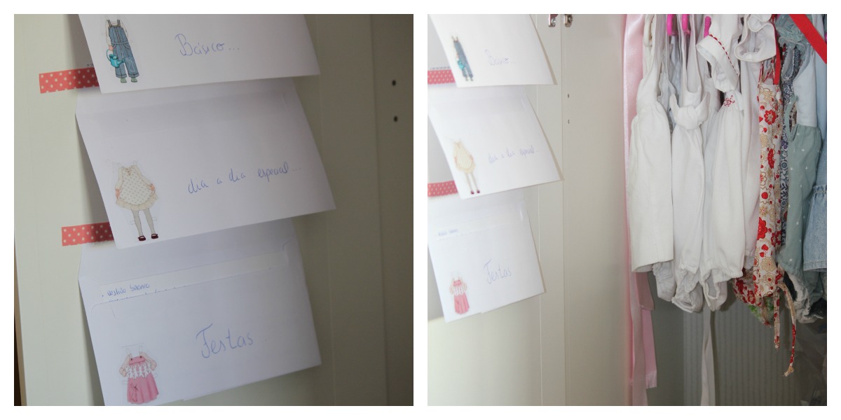 Em cada envelope irá estar a descrição e local das peças a usar e sempre que quiserem alterar, é só mudar o conteúdo do envelope. Fácil e muito útil. Acabaram-se os problemas do não sei onde está e o que vestir.