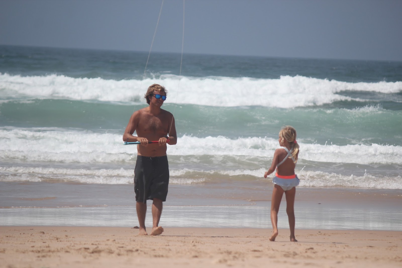 Não há surf, há muitas outras coisas e nesse dia o papagaio que o pai deu à Carlota para ela achar que consegue fazer um bocadinho de Kite surf (esta miúda é fã de tudo o que o pai faz), foi a animação total. Estava mesmo feliz.