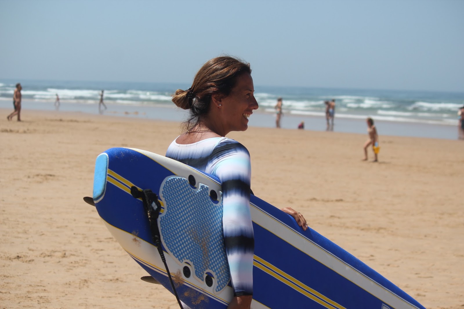 Mães de filhos mais velhos que gostam de surf e já fazem férias sozinhos, aqui até vocês vão gostar que eles fiquem. Sitio 5 estrelas, onde se ouve e se treinam línguas e onde se fazem amizades internacionais. A Carlota ficou tão ou mais fã que nós, não largava a guitarra, fazia grandes concertos ao som da música ambiente, sempre óptima. e andava fascinada com tantos idiomas e pessoas que lá estavam.