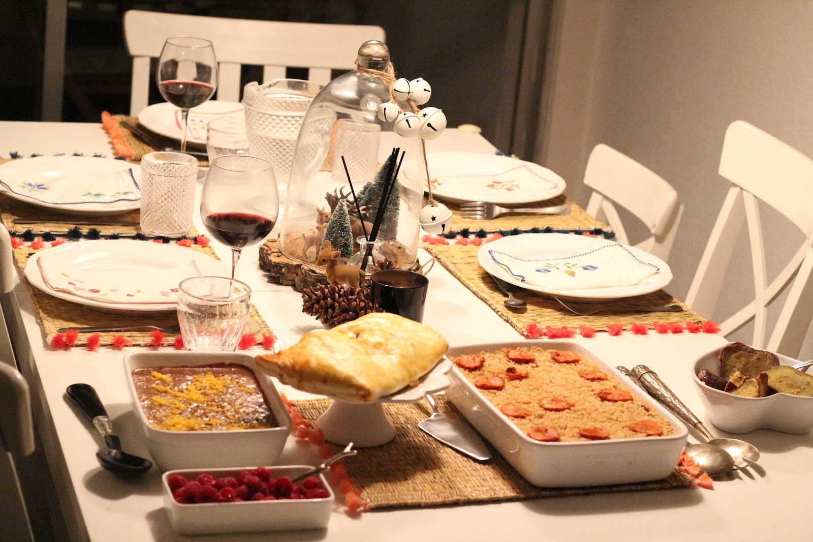 Elas ADORAM o arroz de pato e eu a empada de frango, que para mim é das melhores sugestões da marca. Mousse escolhida pelas miúdas e uma mesa bonita, com o centro de Natal deste ano, que me ajudaram a fazer.