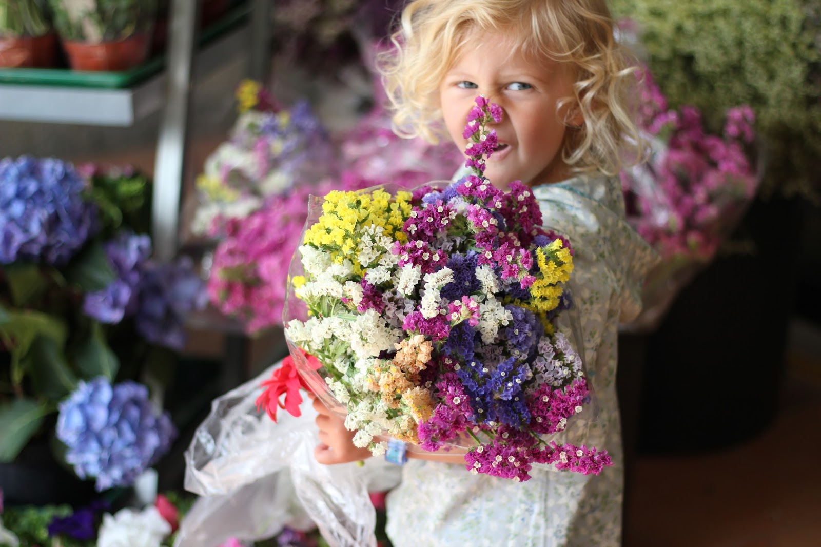 Hoje fui com a Caetana logo cedo ao mercado comprar flores e pão (Domingo podem não só comprar isto como ainda fruta, legumes e algum peixe na parte interior do Mercado.