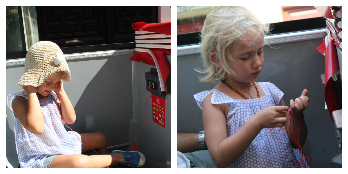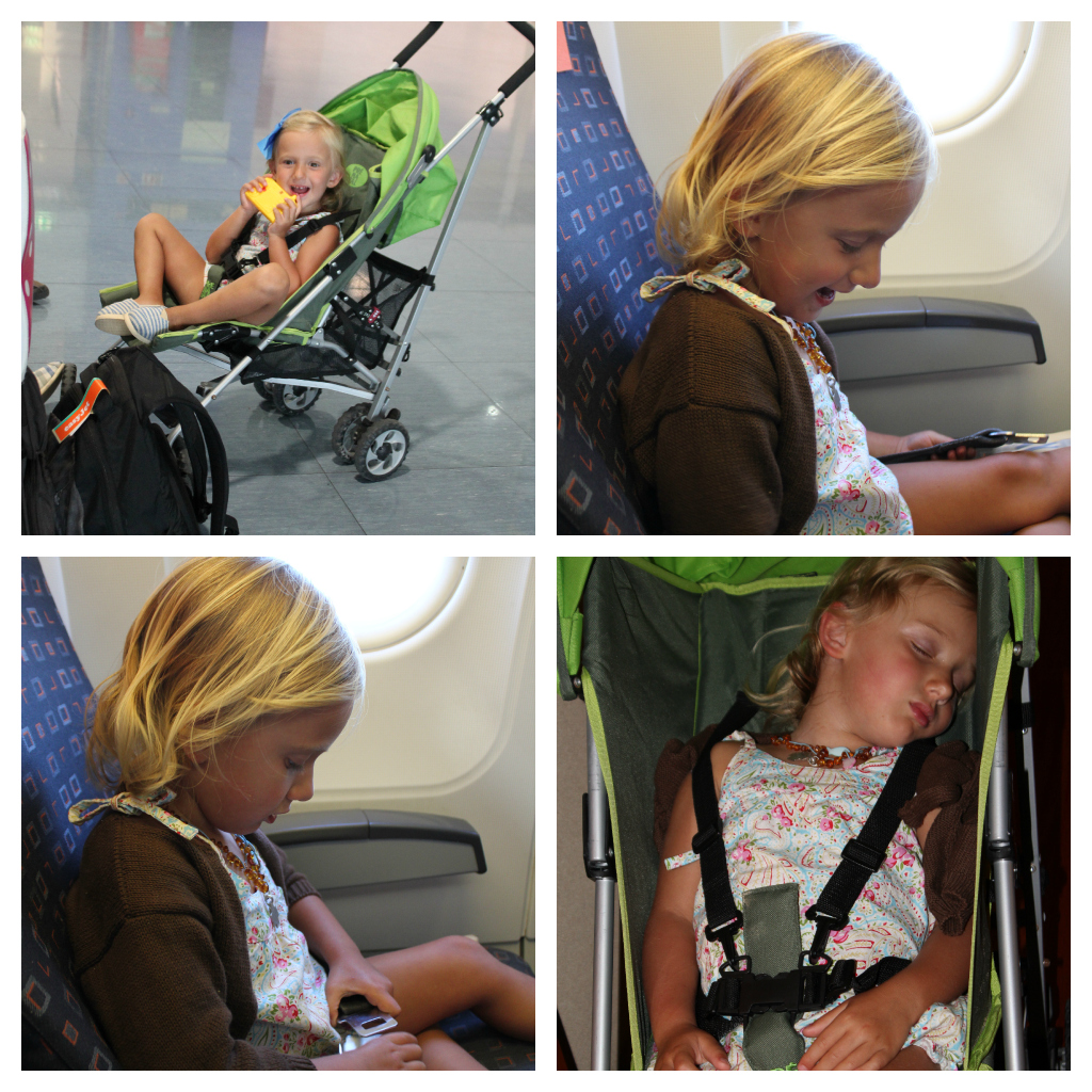A viagem foi a excitação, mal soube que ia andar de avião, não via a hora de levantar voo (infelizmente aqui com uma hora de atraso por causa da tempestade da tarde sexta em Madrid, que diga-se nem percebi), e por isso com muitas perguntas de quando vamos, está quase, é agora? A aterragem nem percebeu, porque já dormia ferrada, e foi assim até ao dia seguinte…