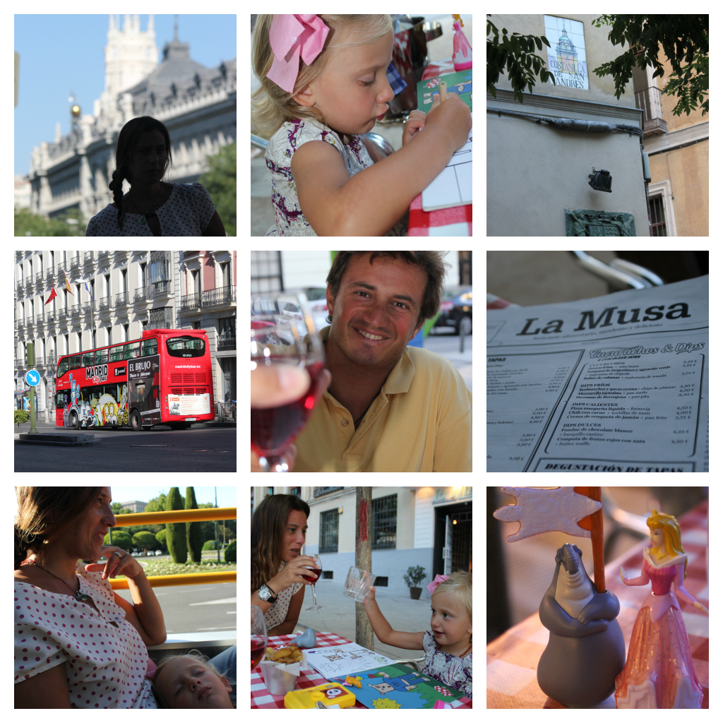 E de volta ao hotel, num sábado em Madrid, claro que só para um banho e uma troca de roupa. Com as dicas das nossa queridas guias o bairro da Latina esperava por nós. Uma noite fantástica, finalmente pude sair de vestido sem casaco, para um serão com muito salero, muitas pessoas bonitas e restaurantes de tapas que foi o que pedimos. Adorámos. Aqui uma das birras da C., mais que compreensível, depois de um dia em grande, estafada e só a querer cama e a sua comida, nada do que lhe dávamos ela gostava, e só queria dormir, mas não no carrinho na cama, pois claro.