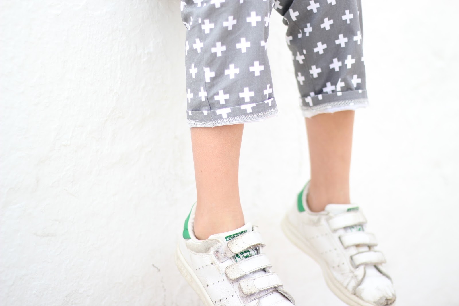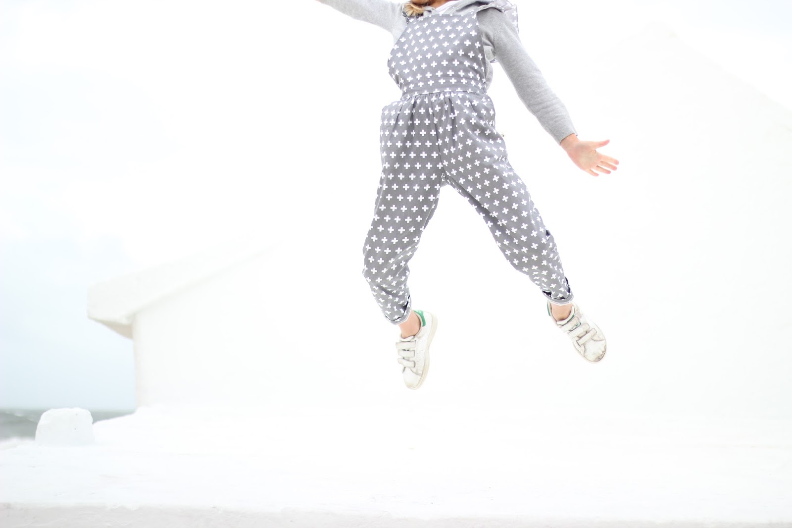 As jardineiras, com o padrão + e X, que a Carlota brinca às somas e às multiplicações ;)