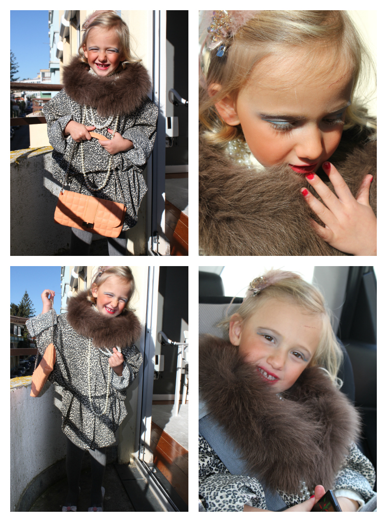 Vejam se não estava o máximo? Mas o melhor era mesmo o ar de felicidade por estar assim vestida, pintada, como pede 1001 vez e ouve não, com saltos altos na rua (coisa que eu não deixo) e com todas as pessoas a meterem-se com ela. O máximo mesmo, e que fácil foi arranjar o kit, tudo prata da casa.