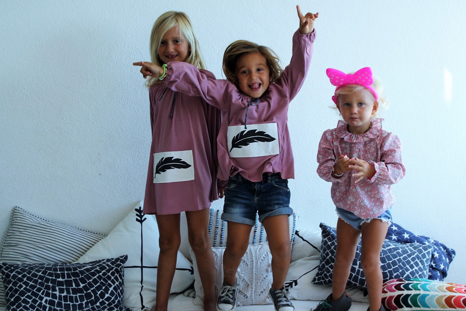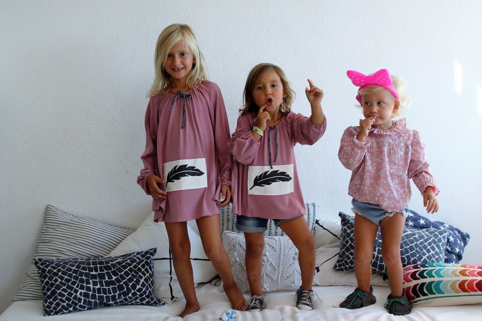 Gira mas gira a nova colecção da Maria Gorda e estas túnicas (para a Carlota comprei o numero acima para ficar vestido) e esta camisa de golas fizeram um matchy-matchy diferente, não todas de igual mas com os mesmos tons. Cada vez gosto mais de as ver vestidas diferentes, mas elas continuam a preferir vestir de igual.