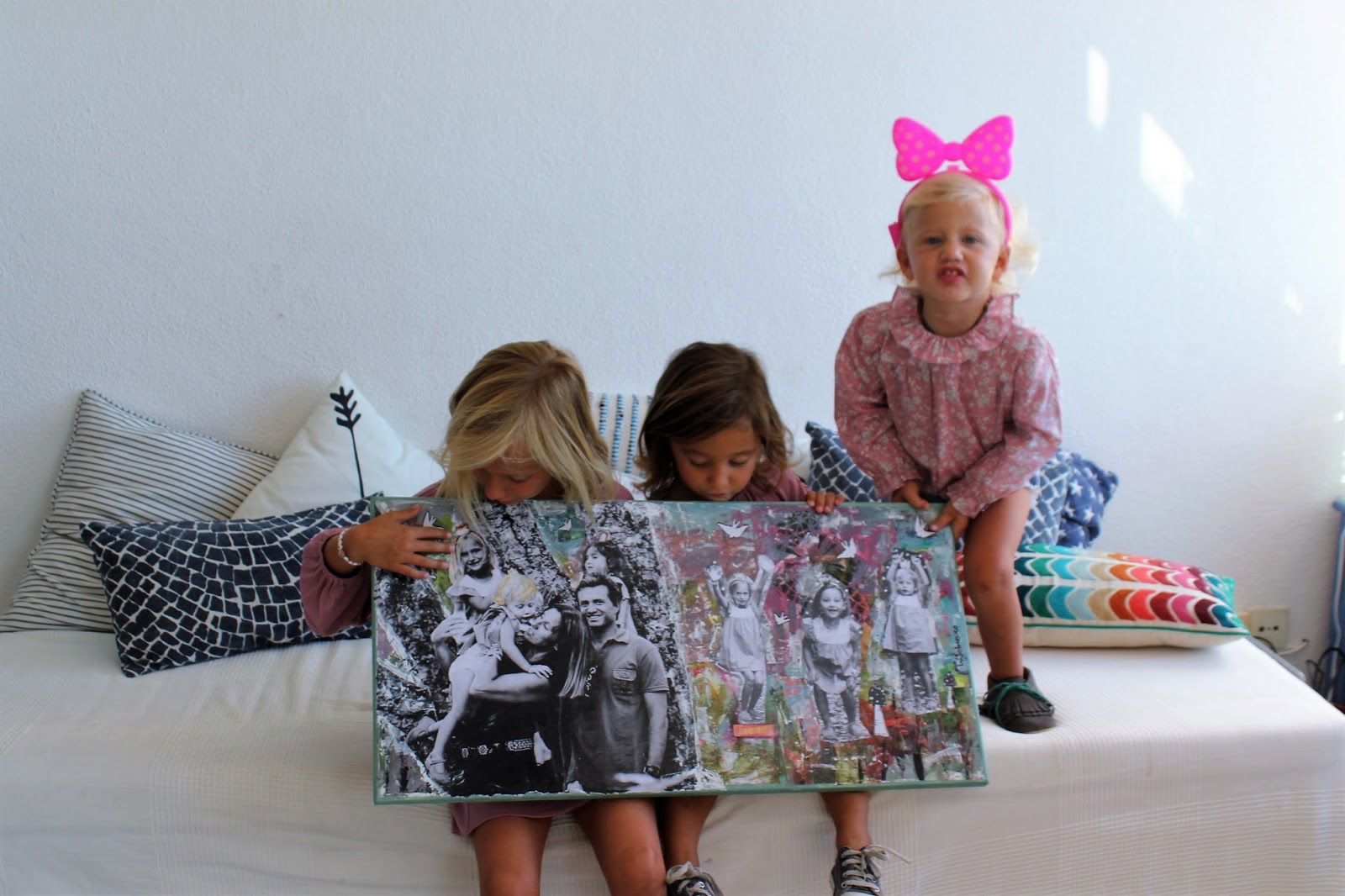 A I. é sem dúvida uma artista e o quadro que nos fez vai ficar o máximo no sítio que já escolhemos da sala. O coração de fotografias vai dar lugar à tela da Sweetspotbyines. É diferente, ficou o máximo com as fotografias que ela escolheu da nossa última sessão com a Ties (uma das mil razões boas de ter sessões giras) e tem tudo a ver comigo, aliás connosco porque o H e as Cs também adoraram mal o viram.